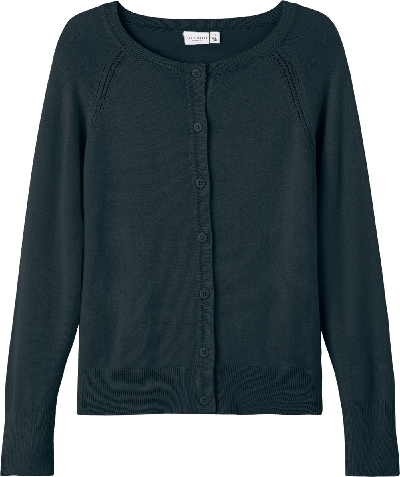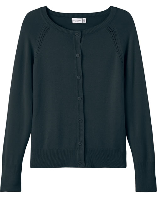 Hübsche Strickjacke für Mädchen von NAME IT. Verschlossen wird die Strickjacke mit einer Knopfleiste. Die Strickjacke hat einen klassischen Schnitt und läßt sich prima kombinieren. Das weiche leichte Material ist ideal für kühlere Tage.