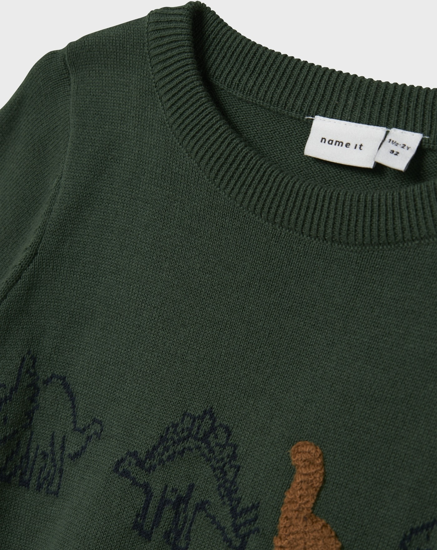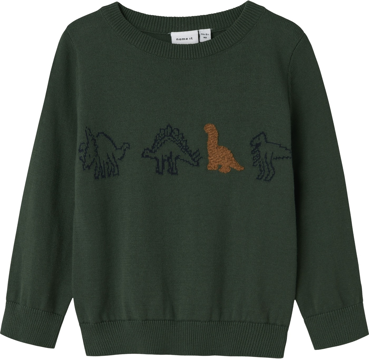 Dieser schöne Strick-Pullover von Name it hat einen gerippten Rundhalsausschnitt und entzückt durch die süßen Dinos.