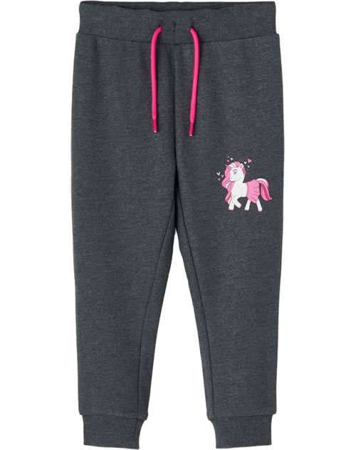 Bequeme Sweat-Hose NMFBIALLY von NAME IT für Mädchen. Das Bündchen auf der Innenseite der Hose lässt sich in der Weite verstellen. Besonders schön ist das Einhorn mit Glitzer auf der Vorderseite.