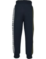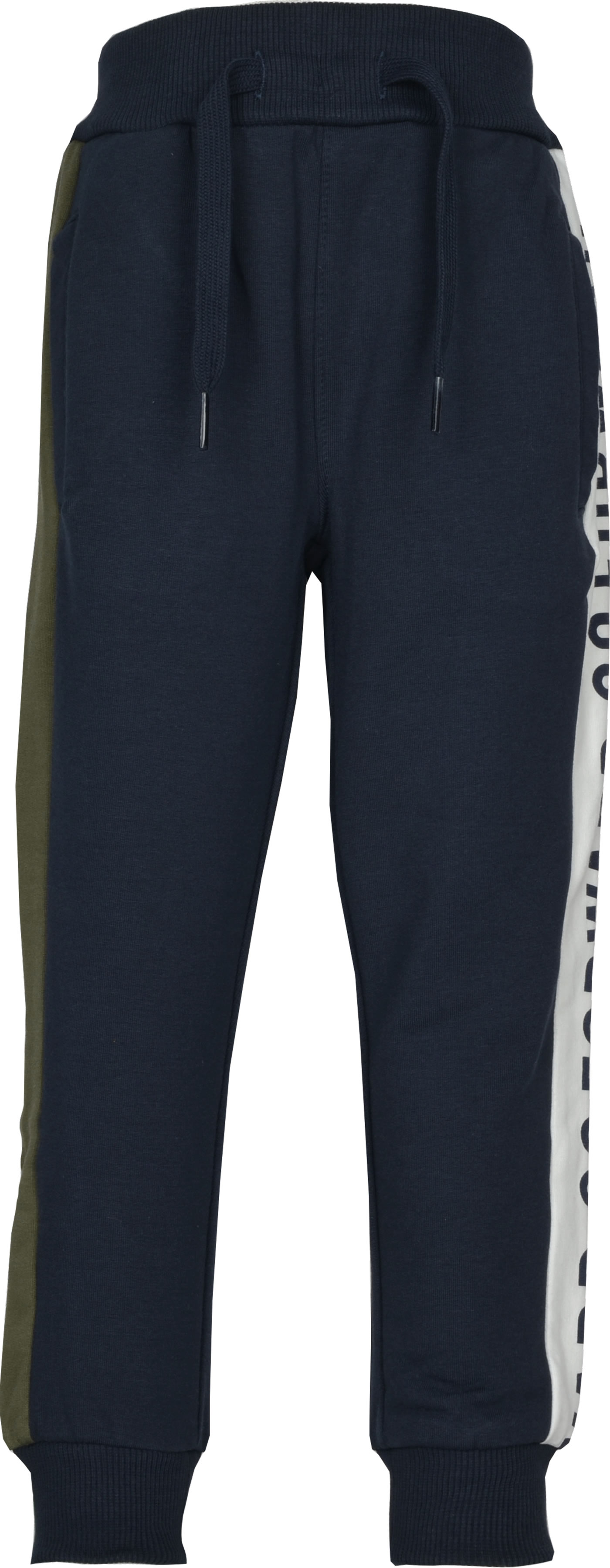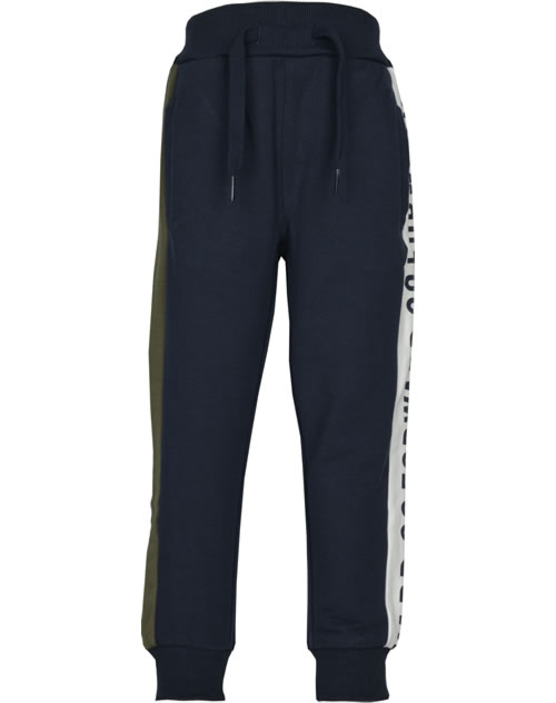 Gemütliche Jogginghose in dunkelblau von NAME IT für Jungen. Besonderer Hingucker sind die farbigen Seitenstreifen mit Schriftzug. Das bequeme Gummi -Bündchen lässt sich in der Weite verstellen. Zwei Eingrifftaschen bieten Platz für kleinigkeiten.Auf der Innenseite ist die Hose weich angeraut und somit ein toller Begleiter für die kalte Jahreszeit.