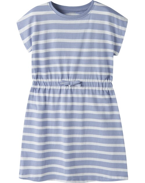 Das Kleid begeistert mit dem Streifen-Design rundum und lässt sich prima mit einer Leggings kombinieren. 🙂