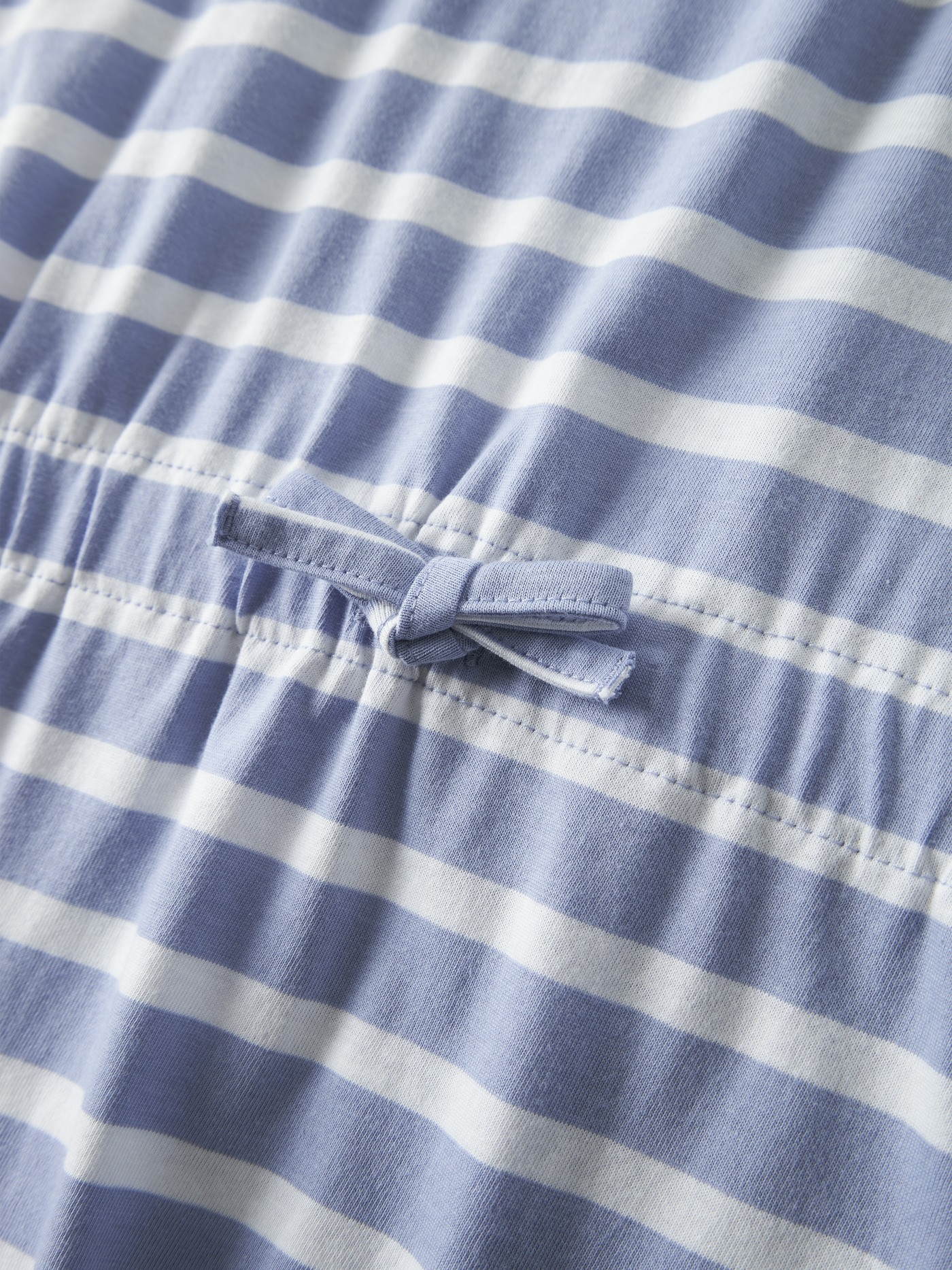 Es hat einen Rundhalsausschnitt, tief angesetzte Schultern sowie einen Gummizug in der Taille mit einer dekorativen Schleife. 🎀