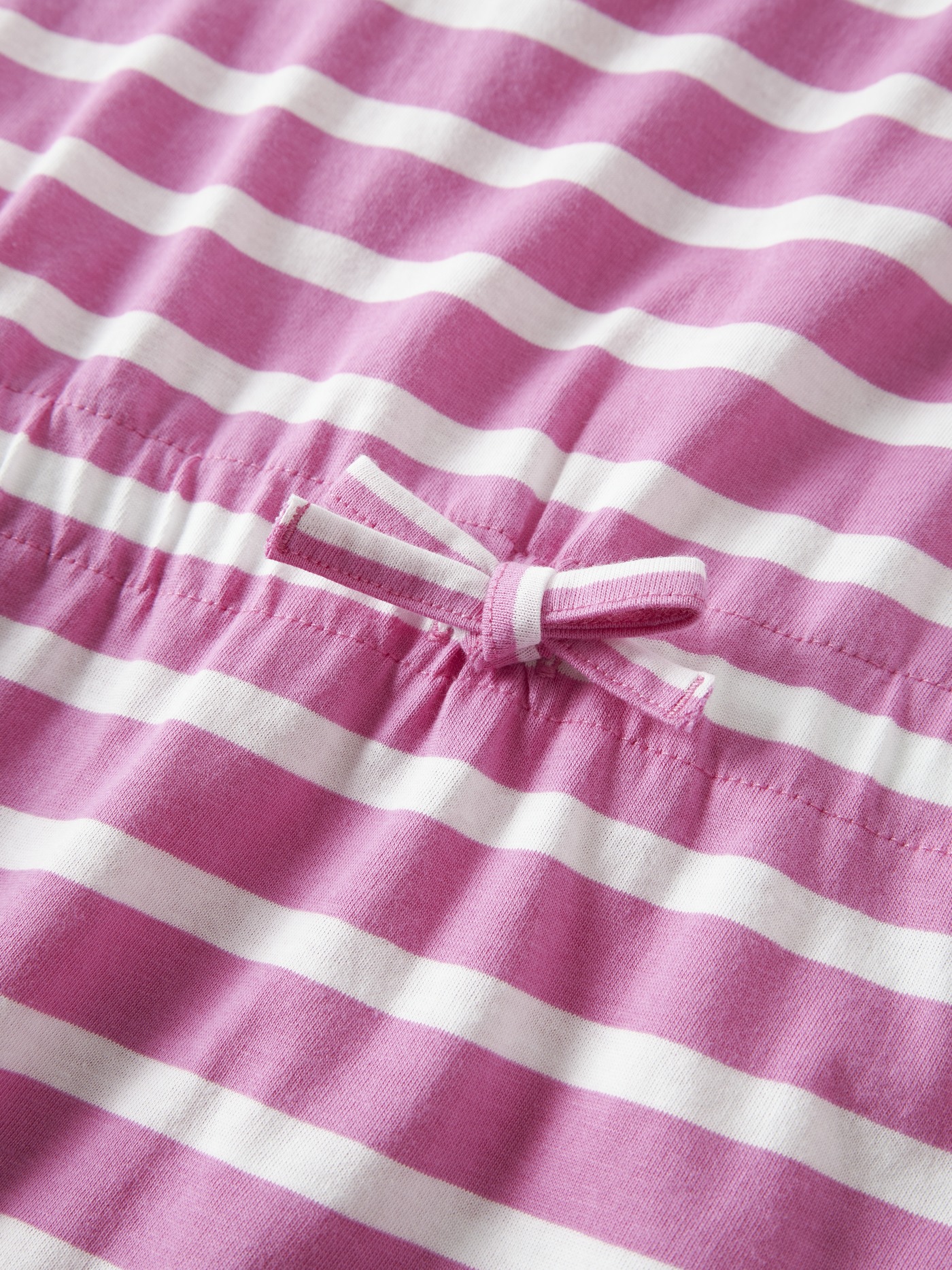 Es hat einen Rundhalsausschnitt, tief angesetzte Schultern sowie einen Gummizug in der Taille mit einer dekorativen Schleife. 🎀
