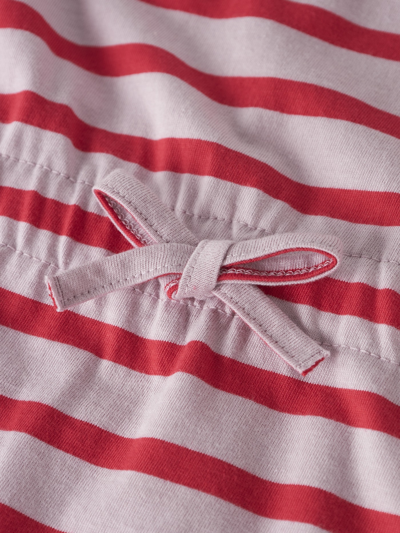 Es hat einen Rundhalsausschnitt, tief angesetzte Schultern sowie einen Gummizug in der Taille mit einer dekorativen Schleife. 🎀