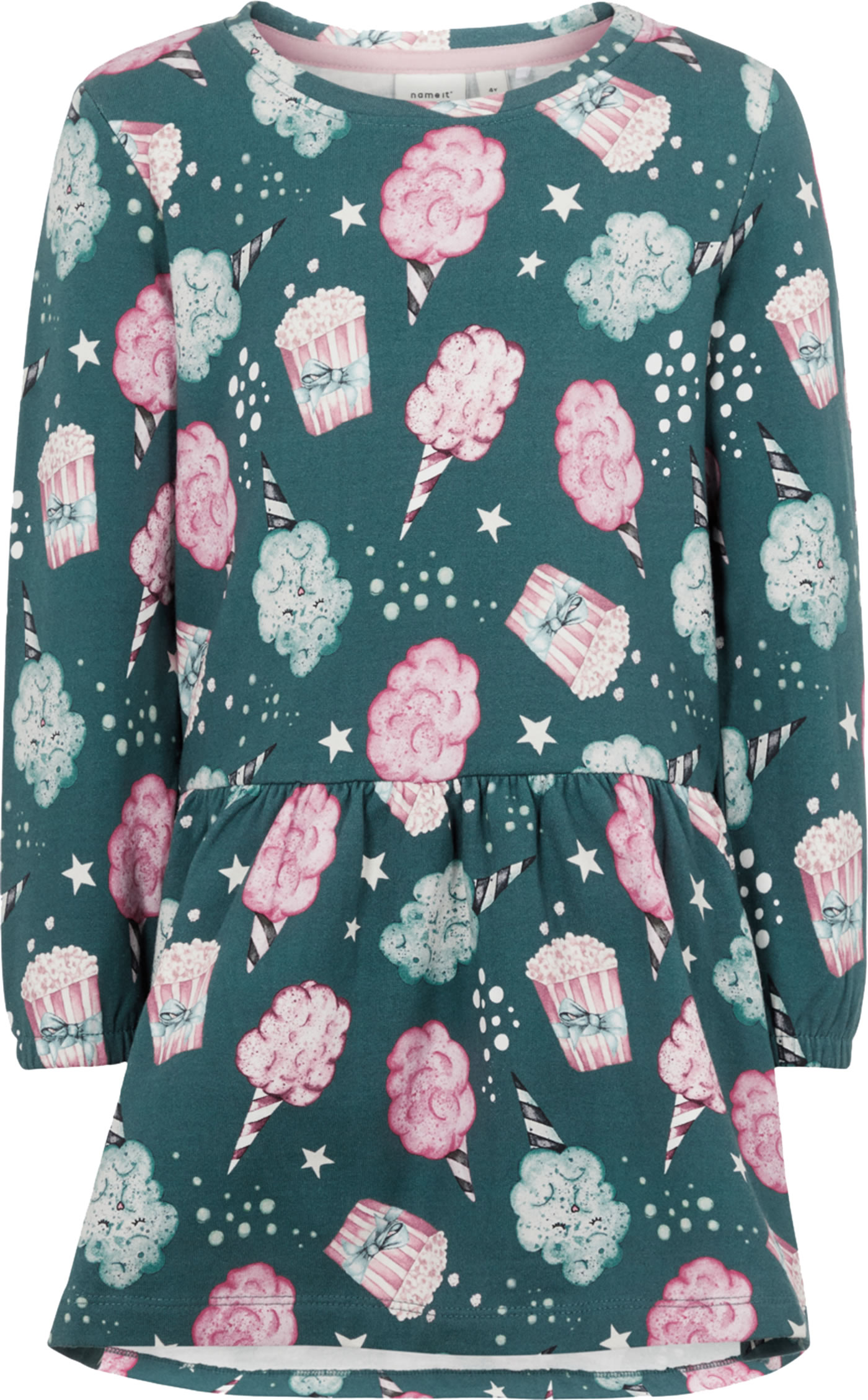 Hübsches Sweat-Kleid mit langem Arm, ausgestelltem Rock und Rundhalsausschnitt von NAME IT. Die Rückseite ist etwas länger geschnitten. Der lockere Schnitt des Kleides ist ideal für den Herbst und lässt sich auch an kühlen Tagen schön mit einer Leggings kombinieren.