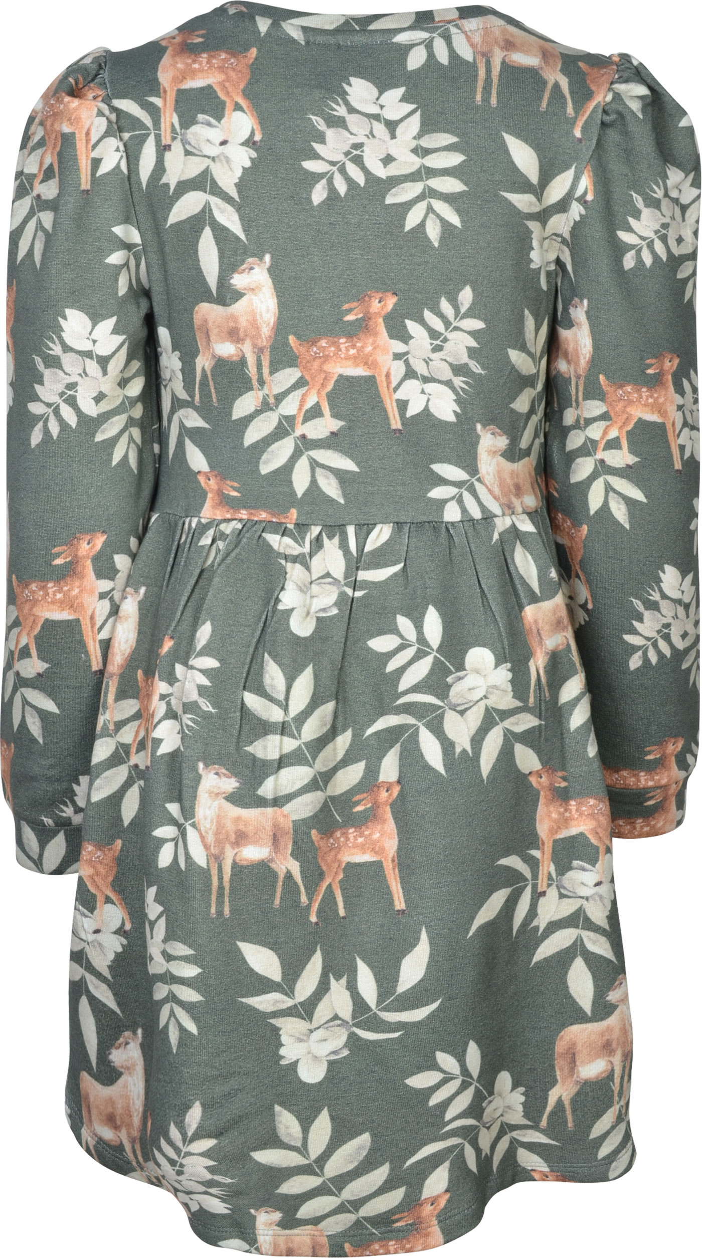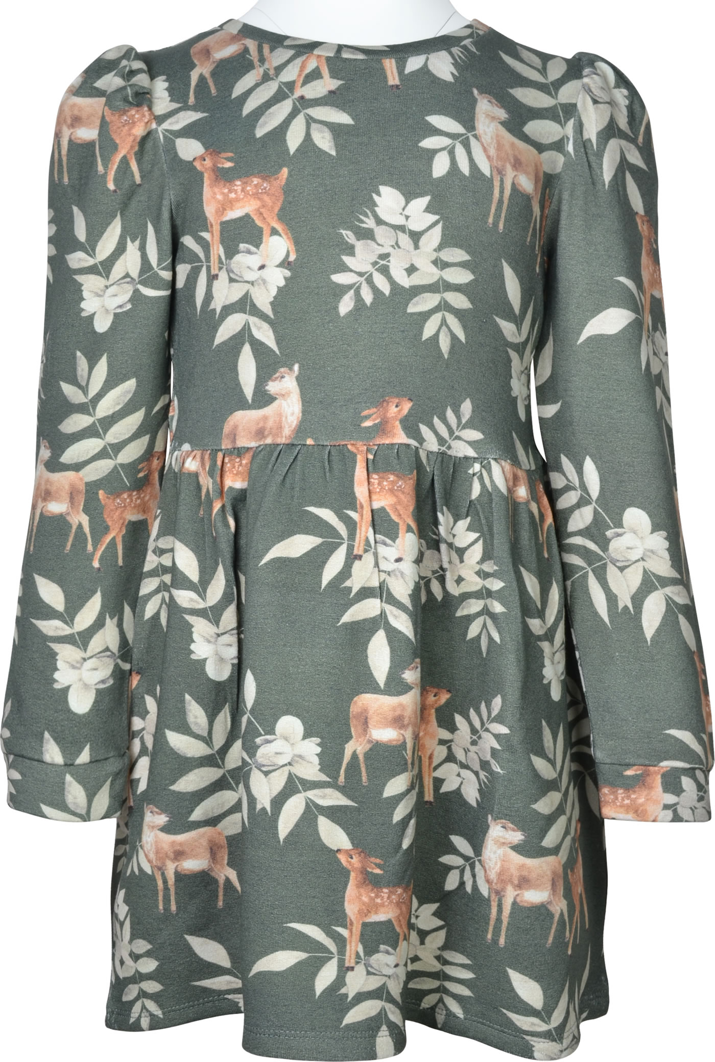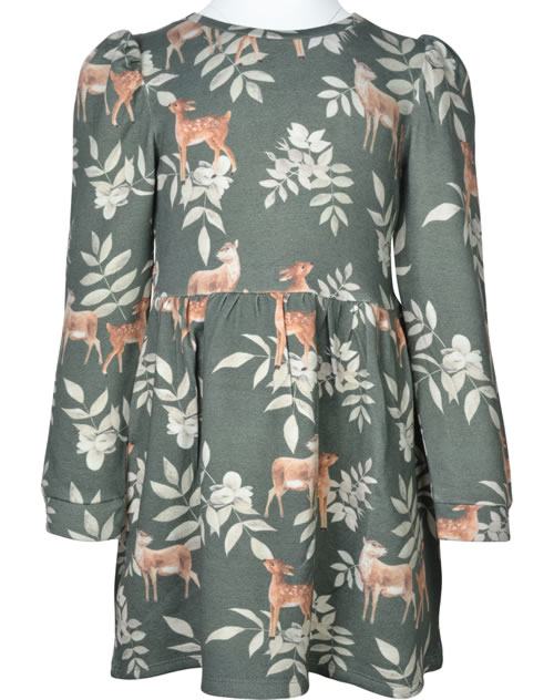 Light-Sweat Kleid mit langen Ärmeln von NAME IT. Innen ist der Sweatstoff kuschelig weich und bietet dadurch einen hohen Tragekomfort. Besonders hübsch sind die leicht gerafften Schultern und das Waldtier-Muster, welches das komplette Kleid deckt. Das Bündchen an der Taille sorgt für guten Sitz. Das Kleid lässt sich prima mit einer Leggings oder Jeans kombinieren.