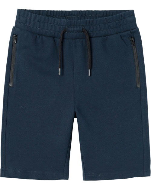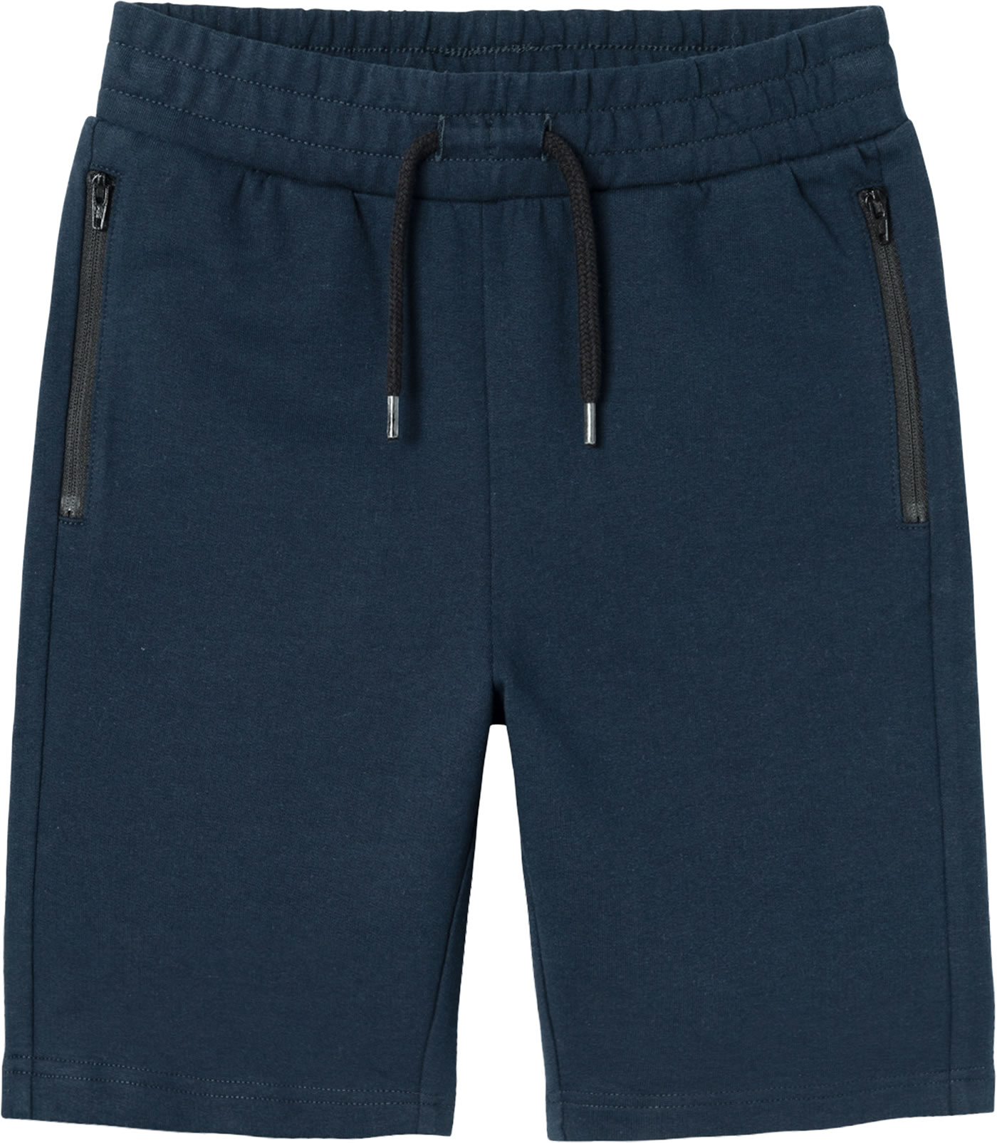 Sportliche Sweat-Shorts NMMVOBAN für Jungen von NAME IT. Eine Kordel ziert den breiten Gummizugbund. Zwei Eingrifftaschen mit Reißverschlüssen bieten Platz für Kleinigkeiten. Das bequeme Material sorgt für einen angenehmen Sitz und somit ist die Shorts besonders an den heißen Tagen ein idealer Begleiter.