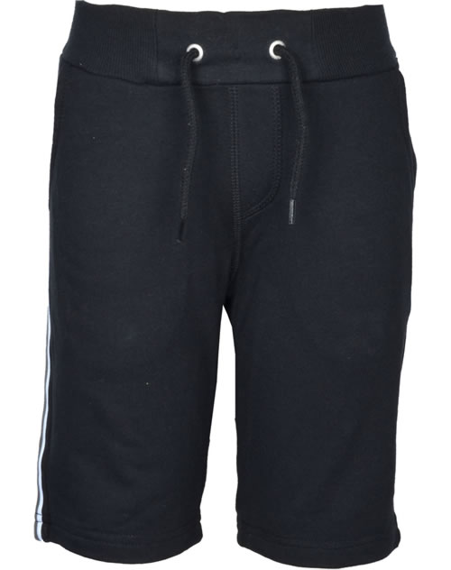 Sportliche Sweat-Shorts NKMHONK für Jungen in schwarz von NAME IT. Eine Kordel ziert den breiten Gummizugbund. Zwei Eingrifftaschen vorn und zwei Po-Tasche bieten Platz für Kleinigkeiten. Seitlische Streifen sind zusätzlicher Hingucker. Das bequeme Material sorgt für einen angenehmen Sitz und somit ist die Shorts besonders an den heißen Tagen ein idealer Begleiter. Der Hosenbund ist innen verstellbar.