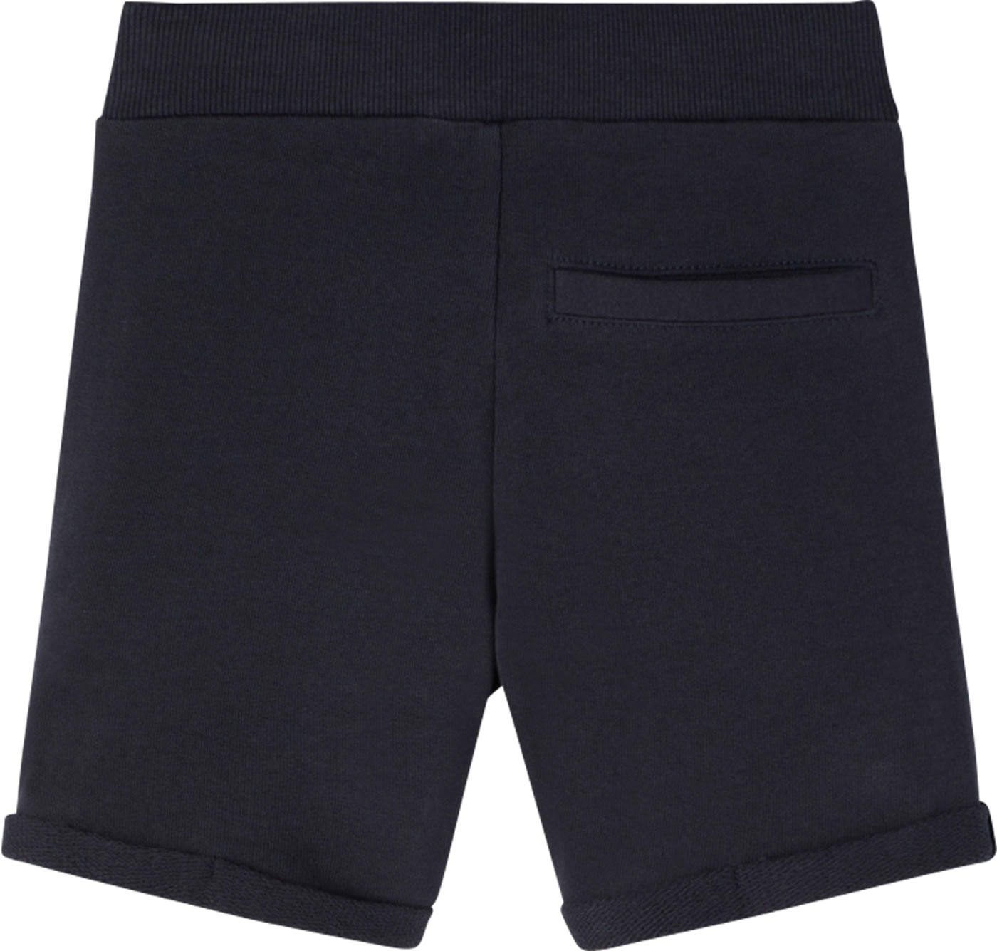 Sweat-Shorts von NAME IT. Das elastische Bündchen lässt sich in der Weite verstellen. Zwei Einstecktaschen bieten Platz für Kleinigkeiten. Schöne Details sind die lässig umgeschlagenen Beine und die angedeutete Tasche auf der Rückseite.