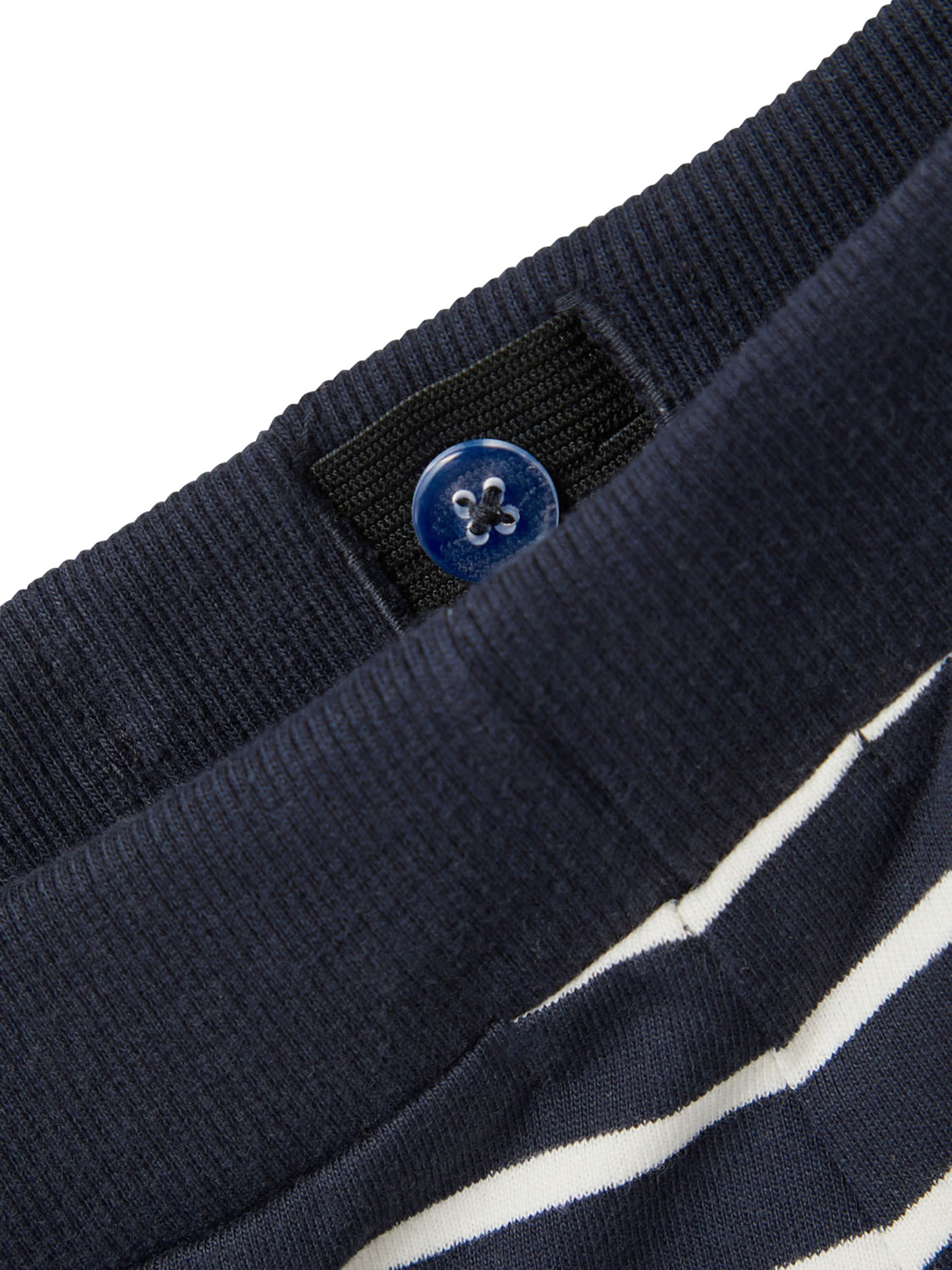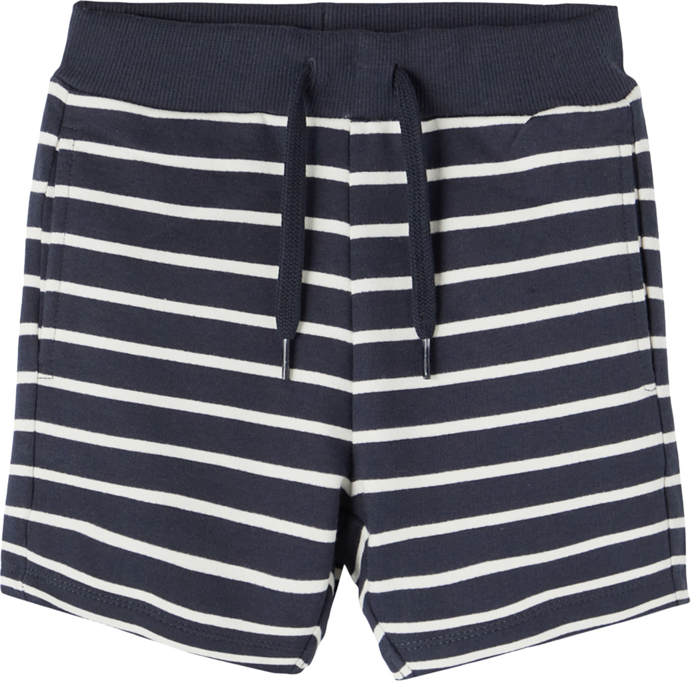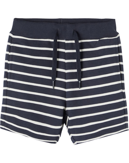 Gestreifte Shorts von NAME IT. Das elastische Bündchen lässt sich in der Weite verstellen. Zwei Einstecktaschen bieten Platz für Kleinigkeiten. Der lässige Schnitt und das weiche Material aus Sweatstoff bieten viel Bewegungsfreiheit.