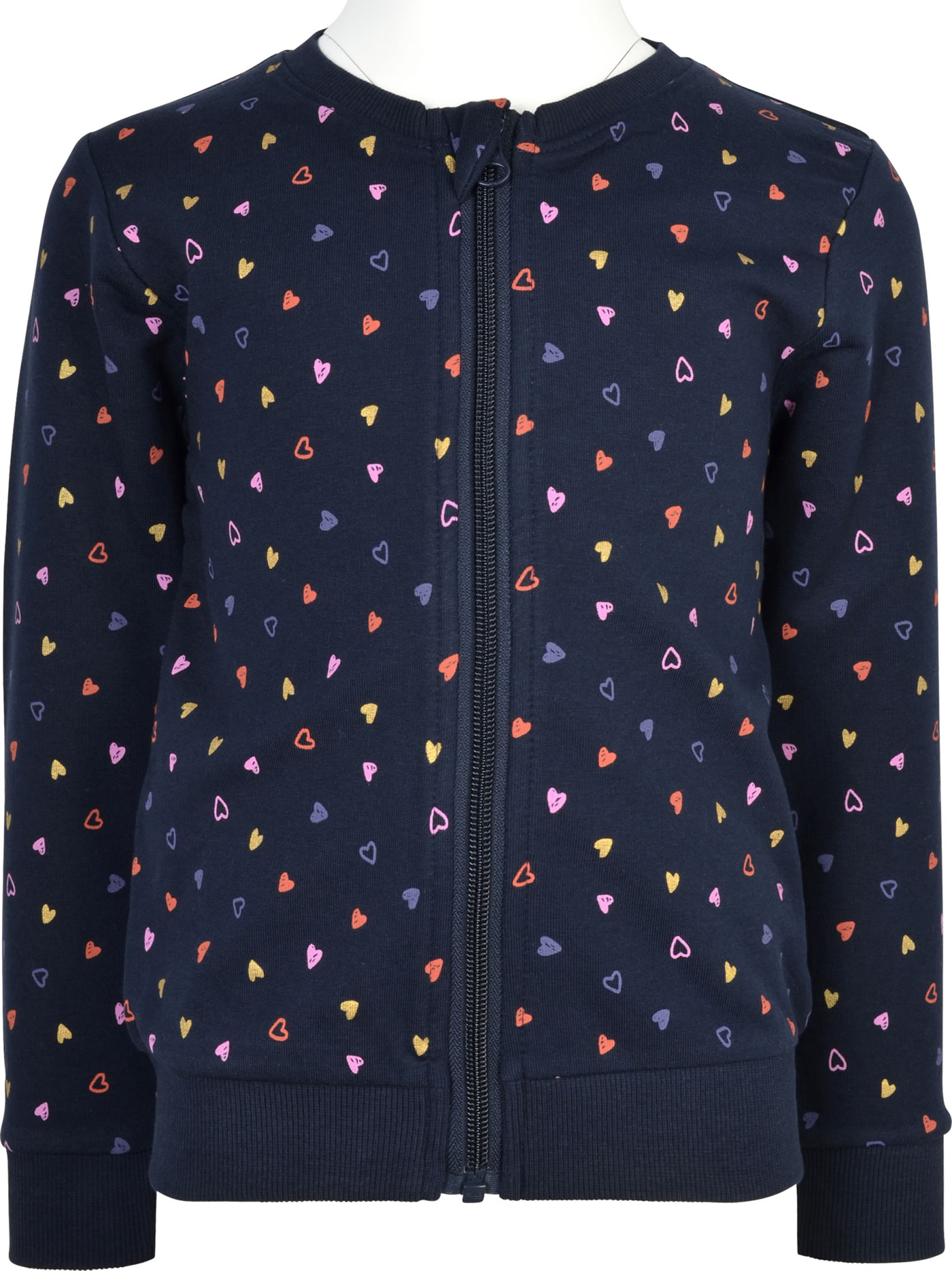 Tolle Sweatjacke für Mädchen von NAME IT. Verschlossen wird sie mit einem Reißverschluss mit Kinnschutz. Tolle Hingucker sind die bunten Herzen, die sich auf der Jacke tummeln. Innen ist die Jacke weich angeraut und dadurch kuschelig warm.