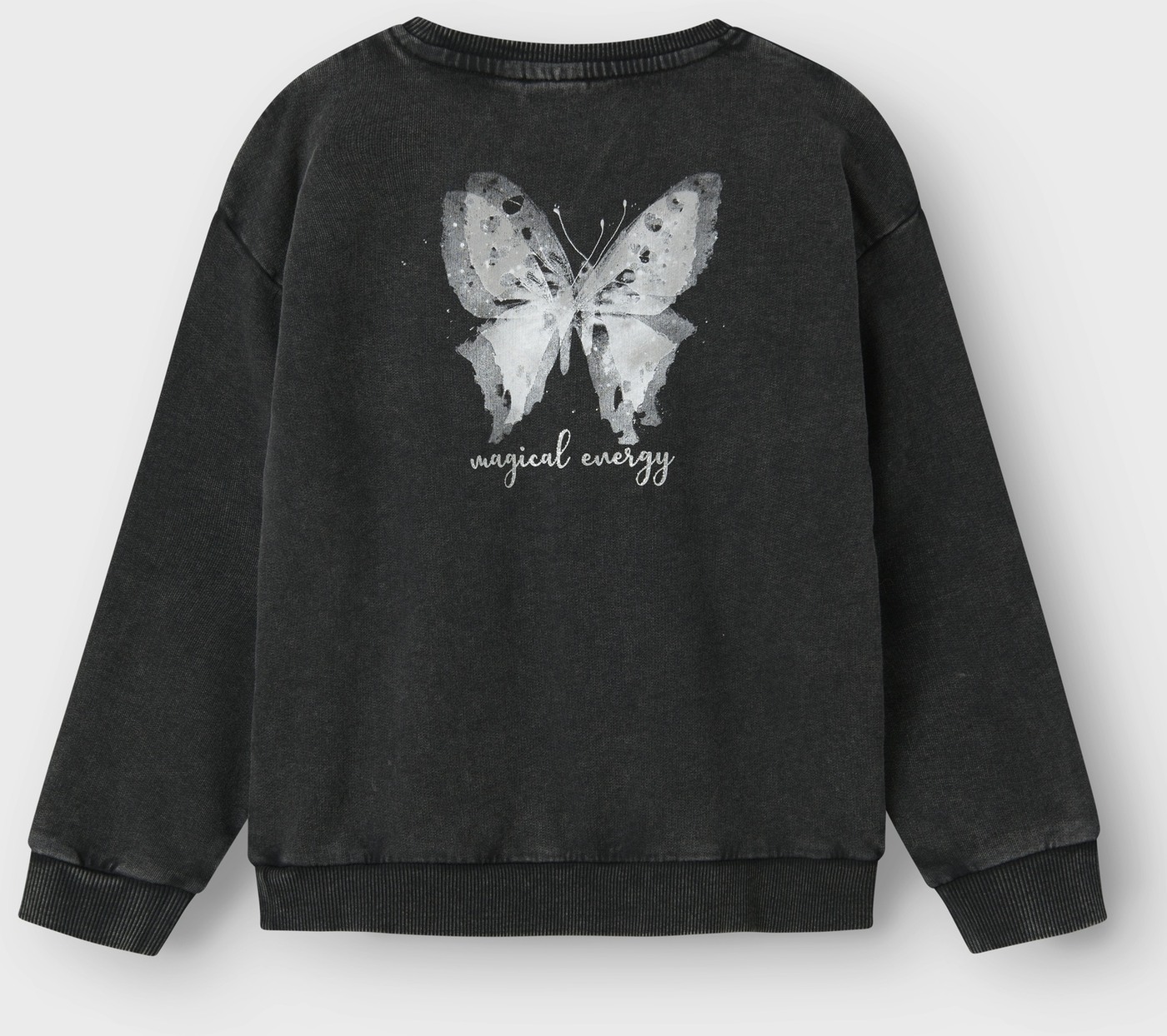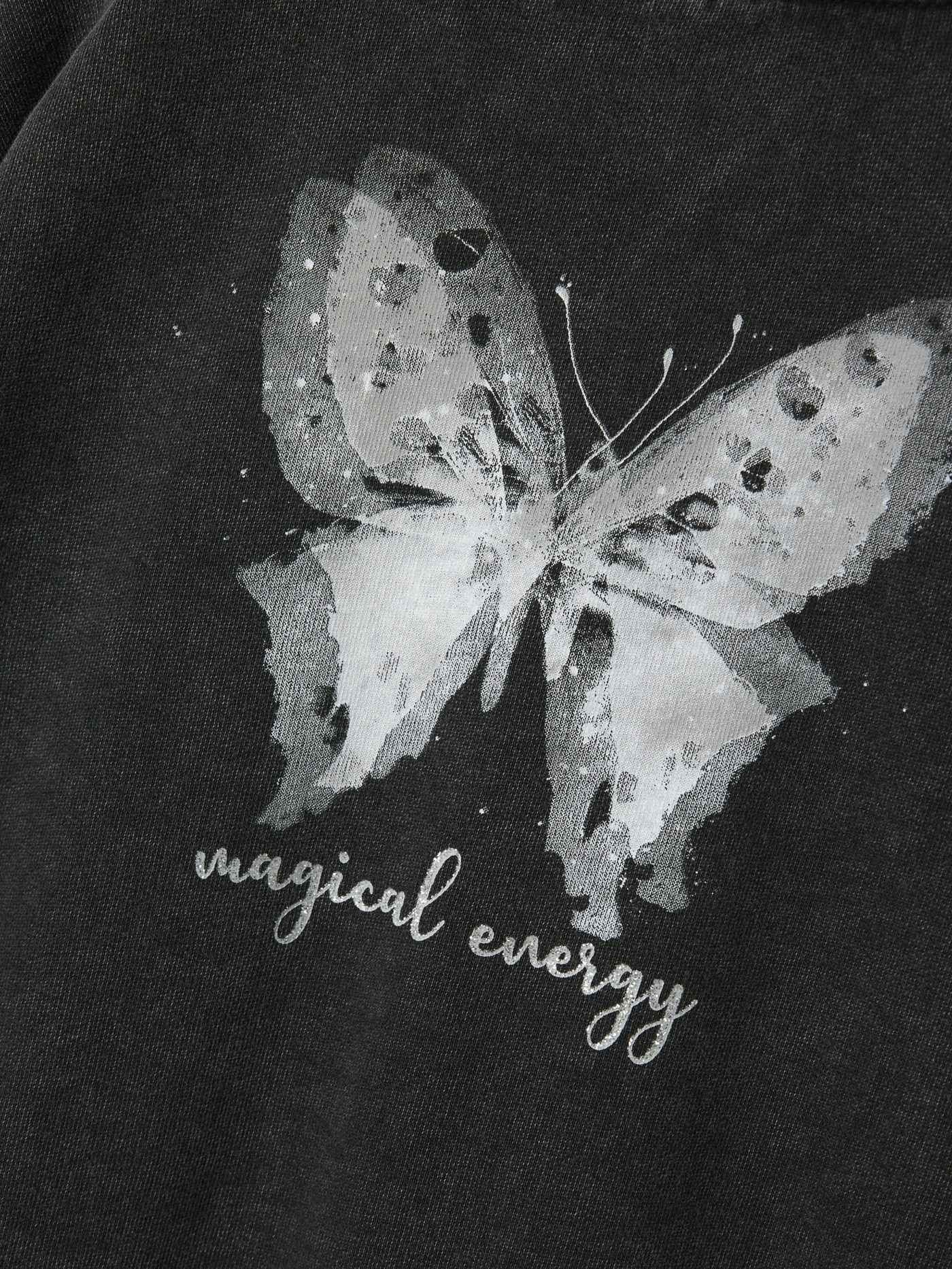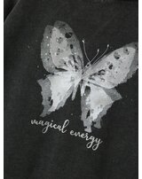 Ein besonderer Hingucker ist der glitzernde Schmetterling auf der Rückseite. 🦋 Aber auch auf der Vorderseite fällt der glitzende Aufdruck "magical energy" ins Auge.