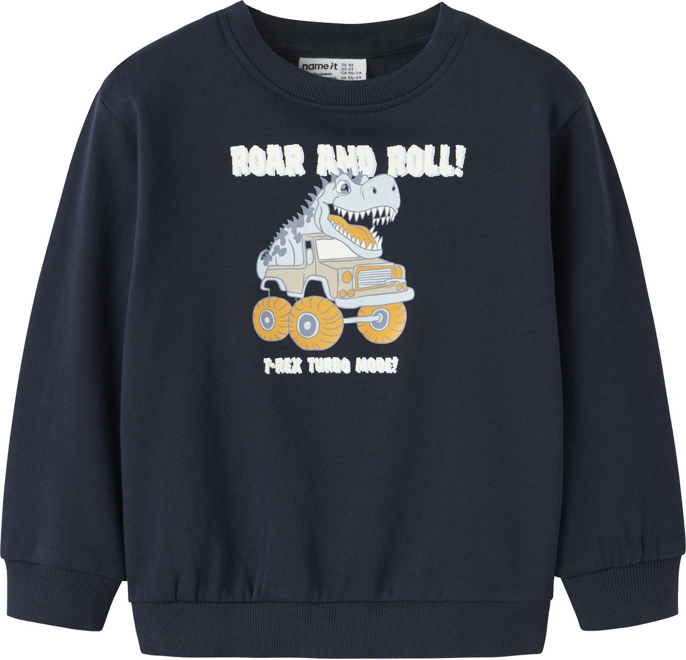 Ein Hingucker ist der Aufdruck eines Monstertruck fahrenden Dinos auf der Vorderseite. 🦖
