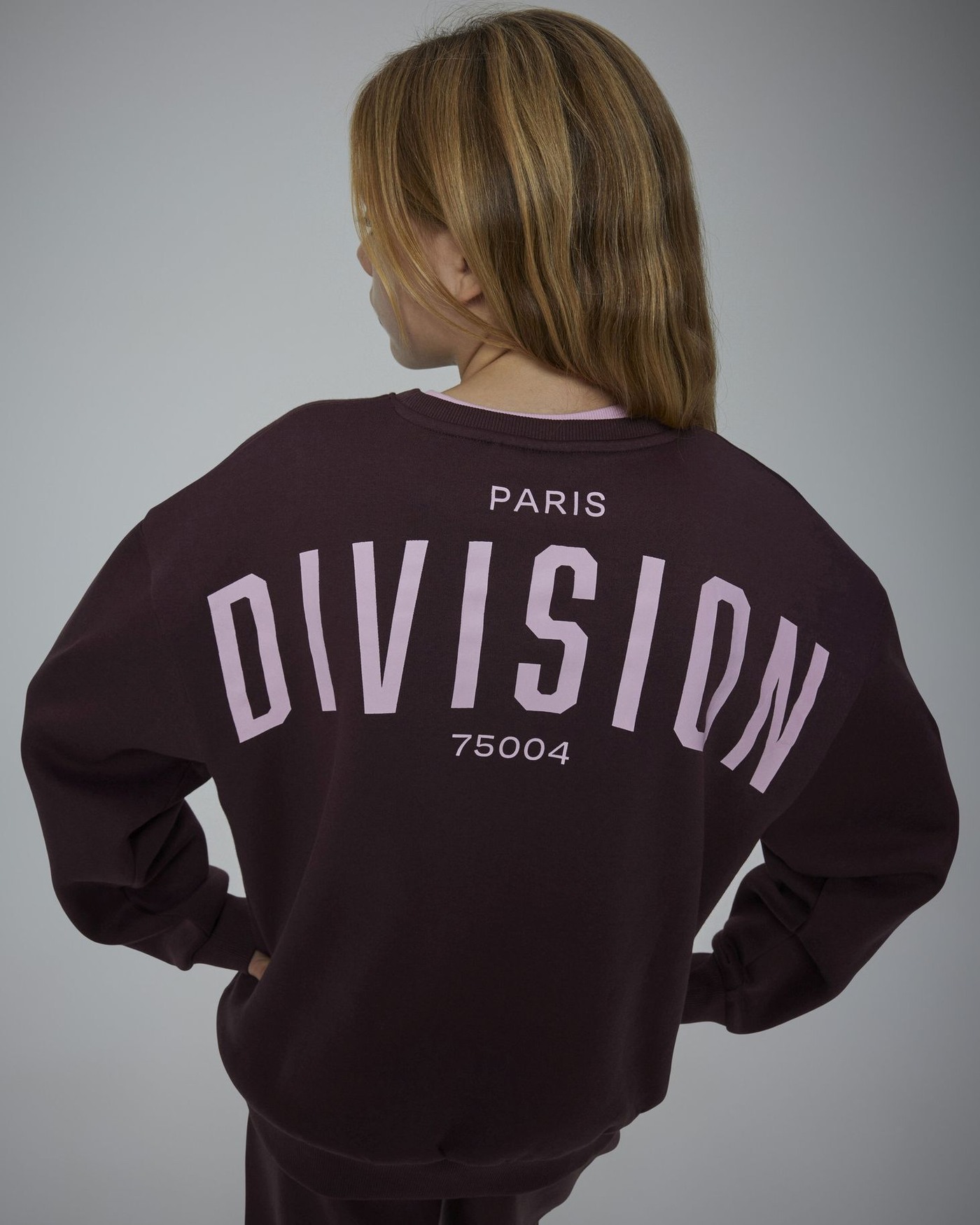 Über den Rücken erstreckt sich der Schriftzug "Paris DIVISION 75004". Vorne ziert zudem der Schriftzug "75004" einen Schulterbereich des Sweatshirts.