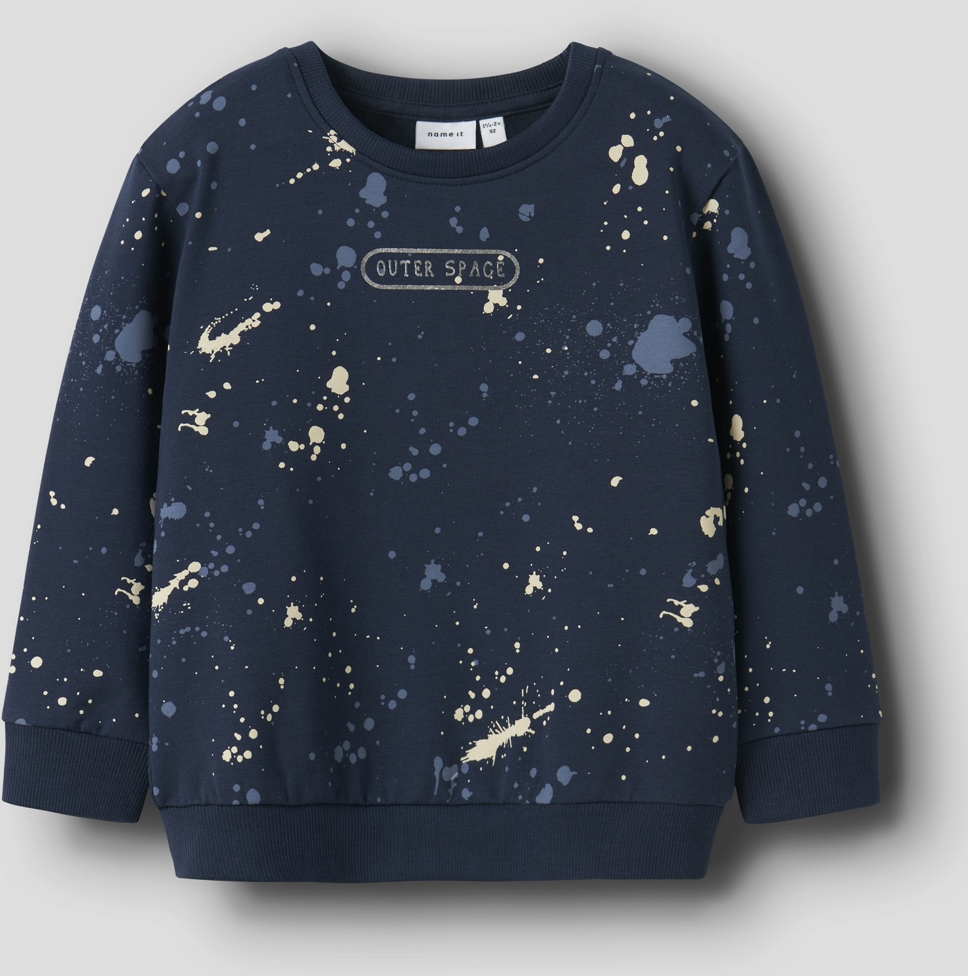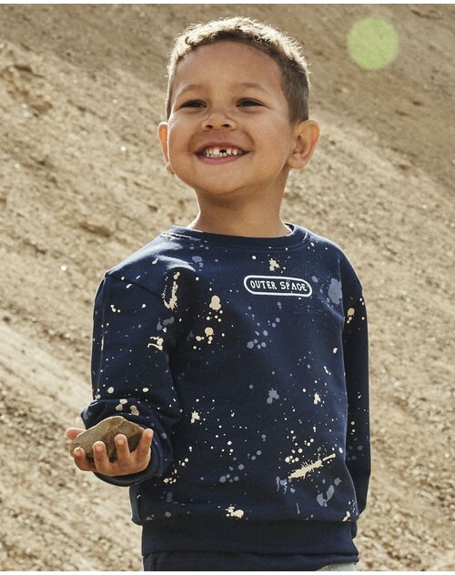 Dieses coole Sweatshirt von Name it begeistert mit den bedruckten Farbklecksen rundum und dem Schriftzug mittig auf Brusthöhe. 😎