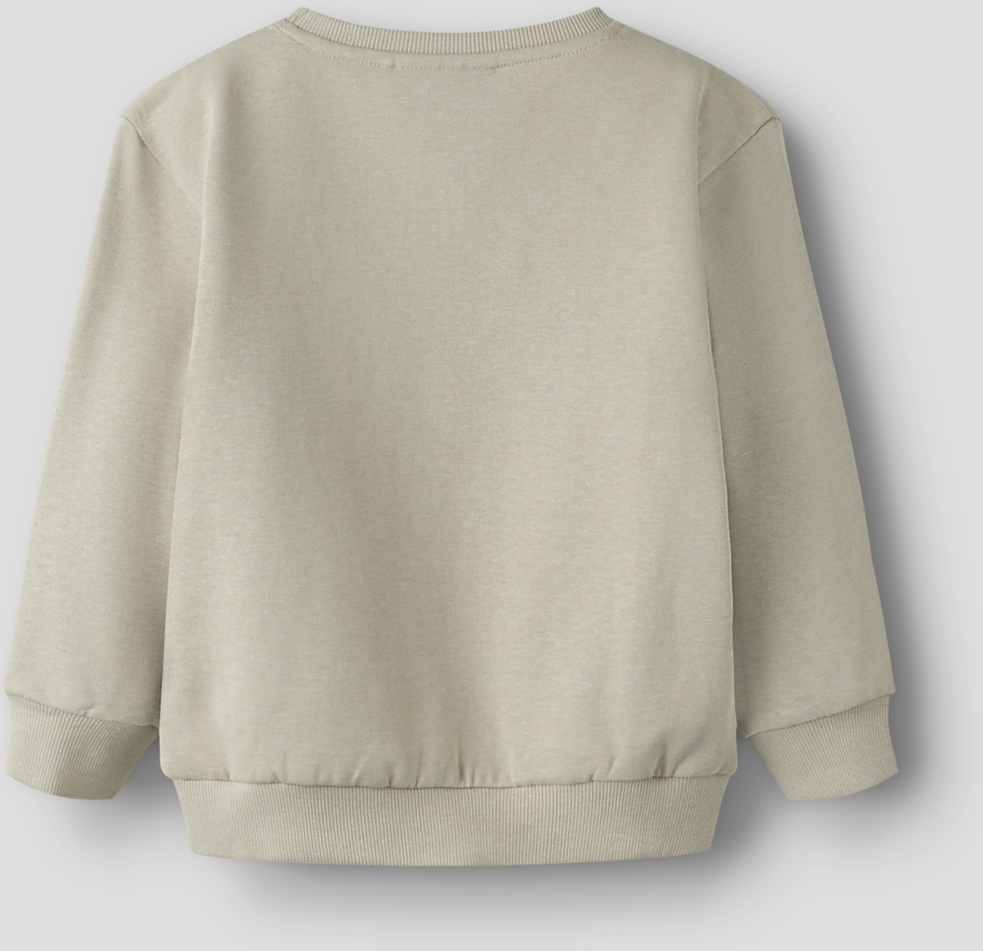 Es hat Rippbündchen an den Ärmelenden, am Saum sowie am Rundhalsausschnitt.
