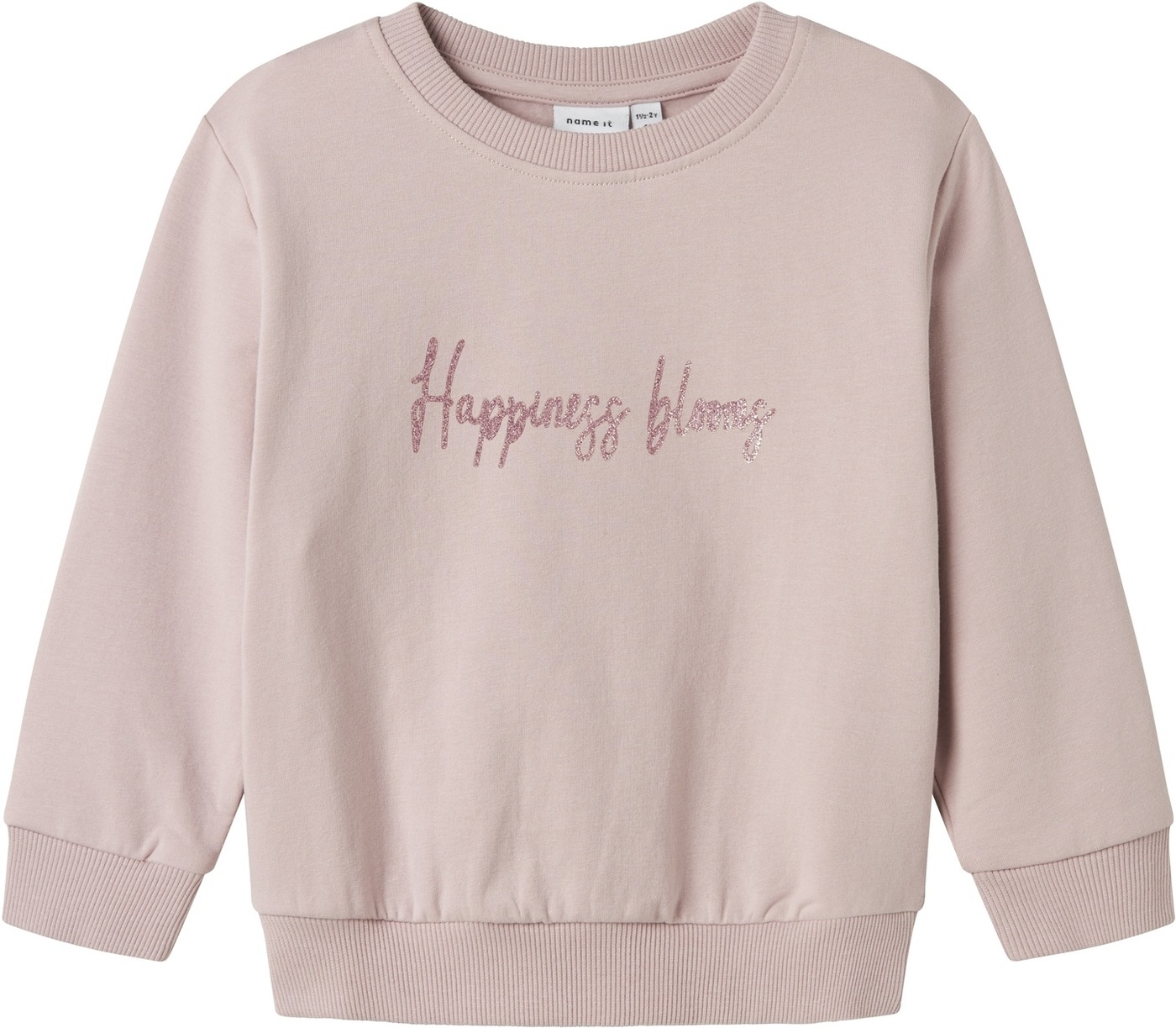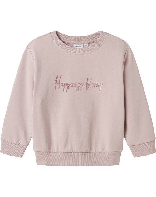 Dieses bequeme Sweatshirt von Name it für Mädchen hat einen tollen Glitzer-Druck auf der Vorderseite - "happiness bloom", übersetzt "das Glück blüht".