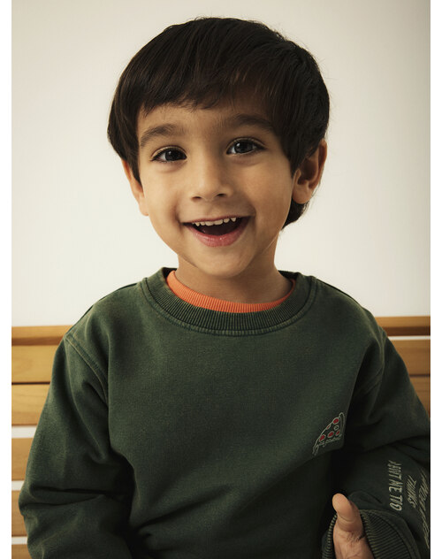 Dieses coole langärmlige Sweatshirt mit Rundhalsausschnitt besteht nahezu aus reiner Baumwolle.