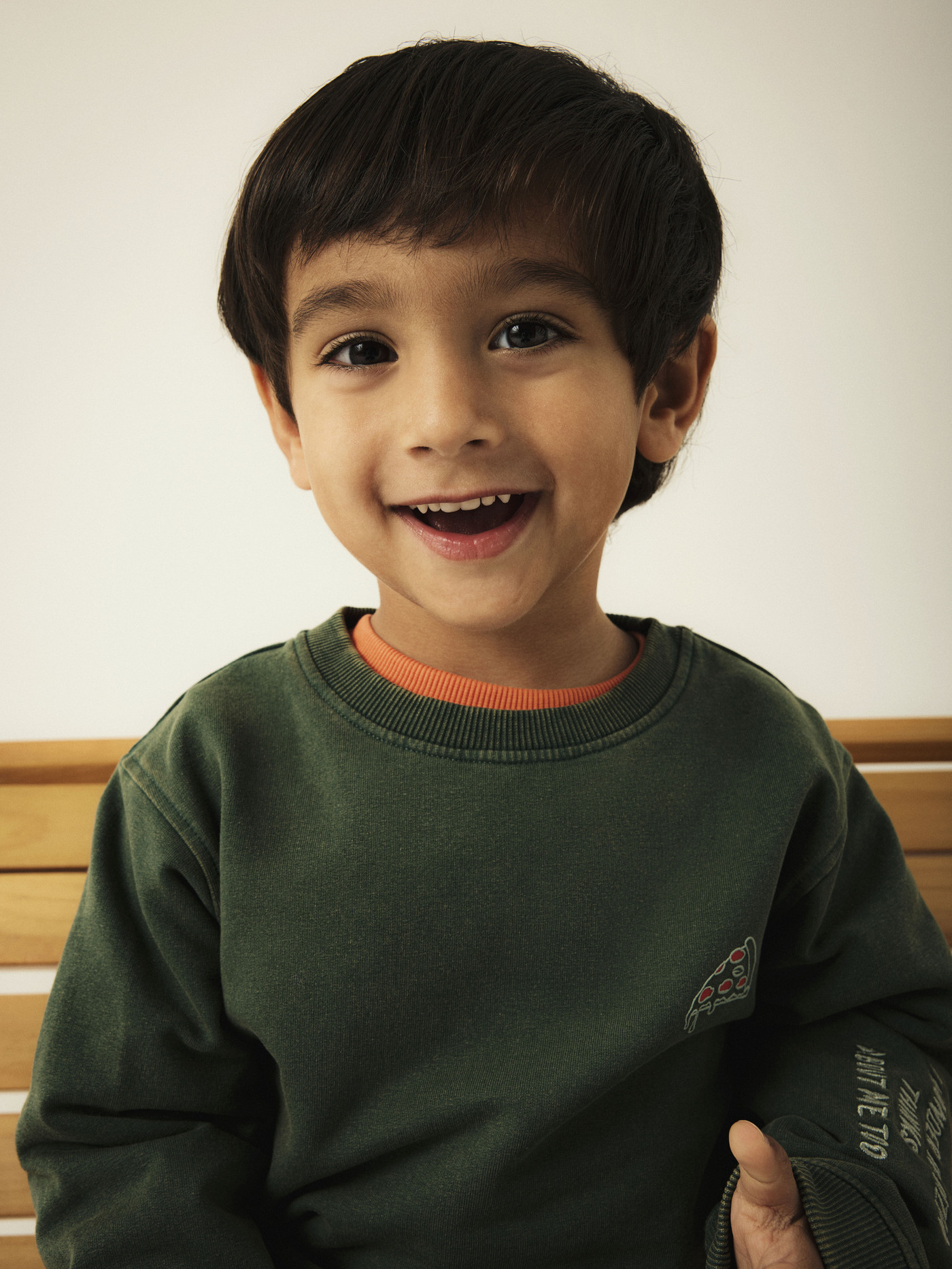 Innen ist das Sweatshirt angeraut, wodurch es sich kuschelig weich auf der Haut anfühlt.