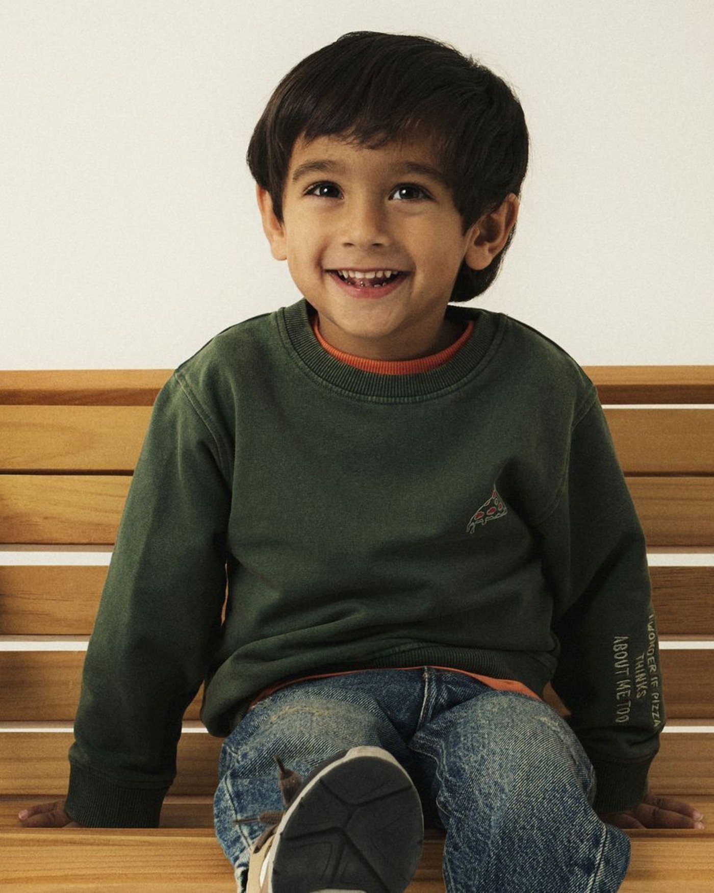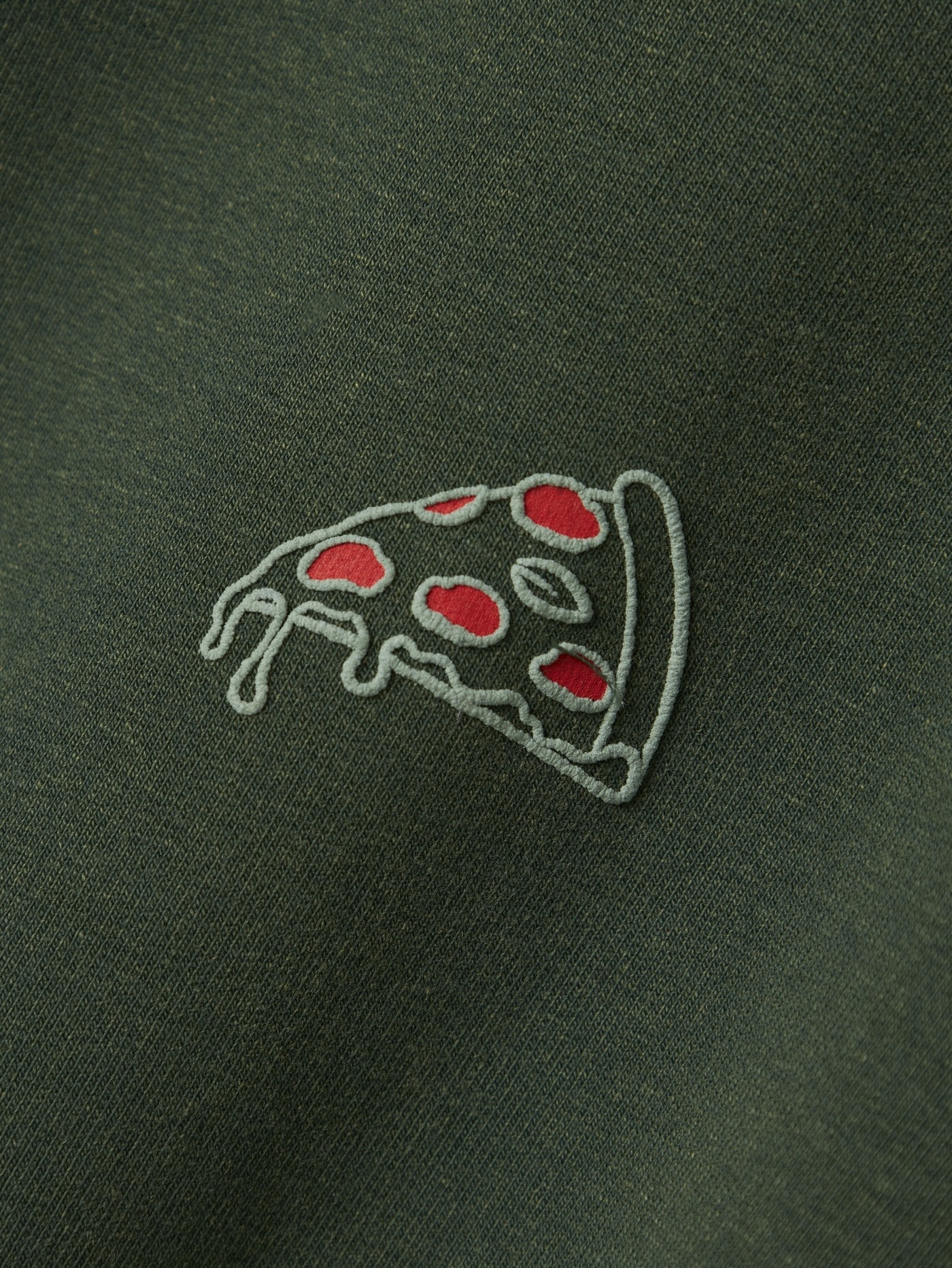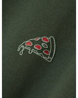 Der Schriftzug am Ärmel sowie das Pizzastück-Motiv auf Brusthöhe sind kleine Blickfänger. 🍕