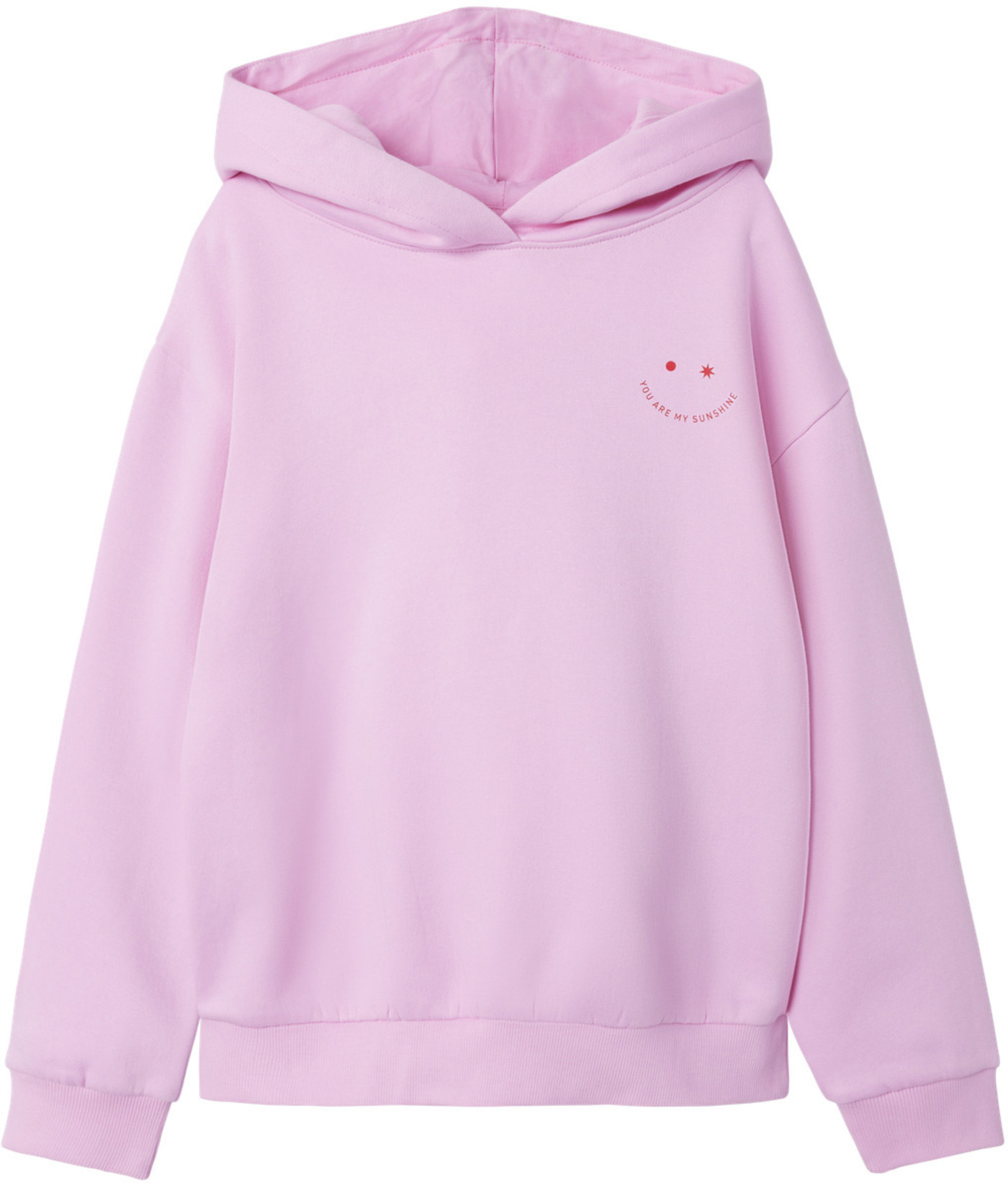 Tolles Sweatshirt mit Kapuze für Mädchen von Name it. Das Sweatshirt lässt sich prima mit einer Jeans kombinieren. Die farbigen Schriftzüge auf der Vorder-und Rückseite sind schöne Details. Das weiche Material sorgt für ein angenehmes Tragegefühl.