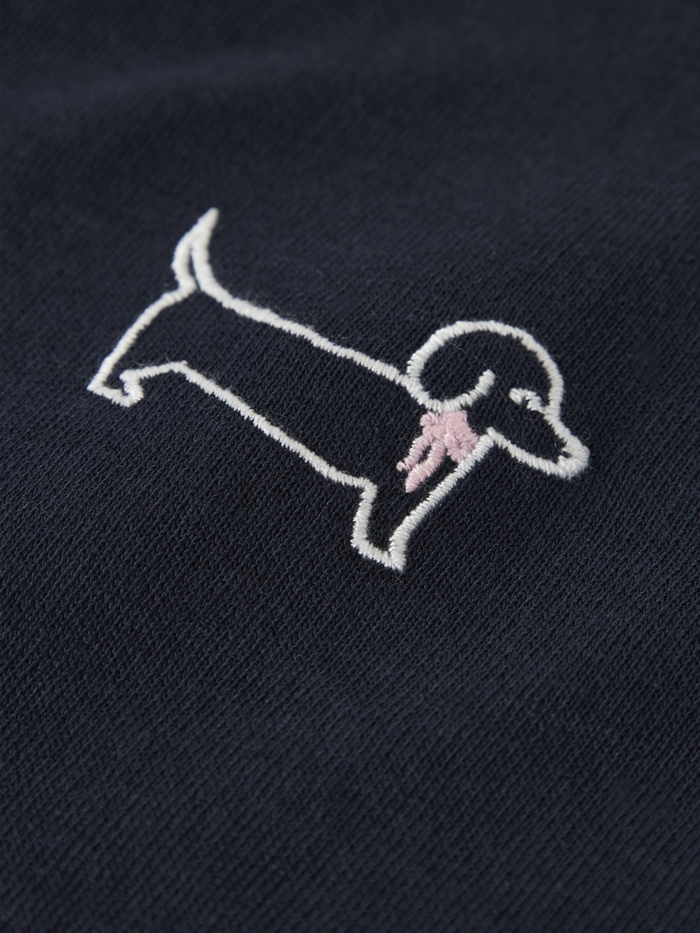 Dieses locker geschnittene Sweatshirt überzeugt mit einem trendigen Print und liebevollen Stickdetails!