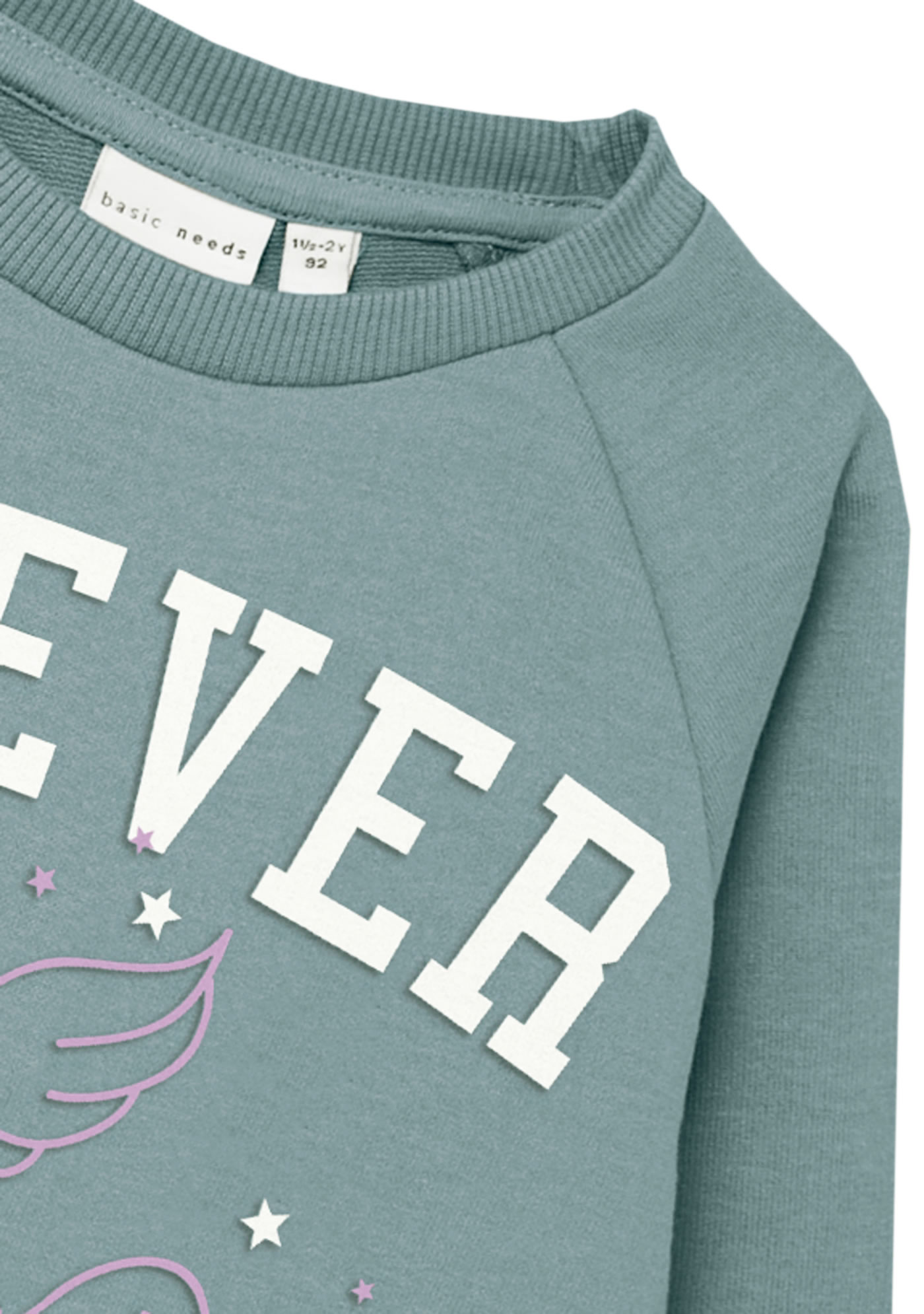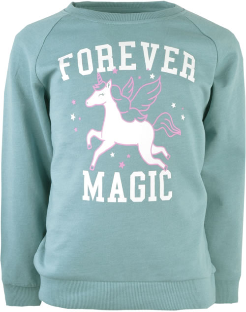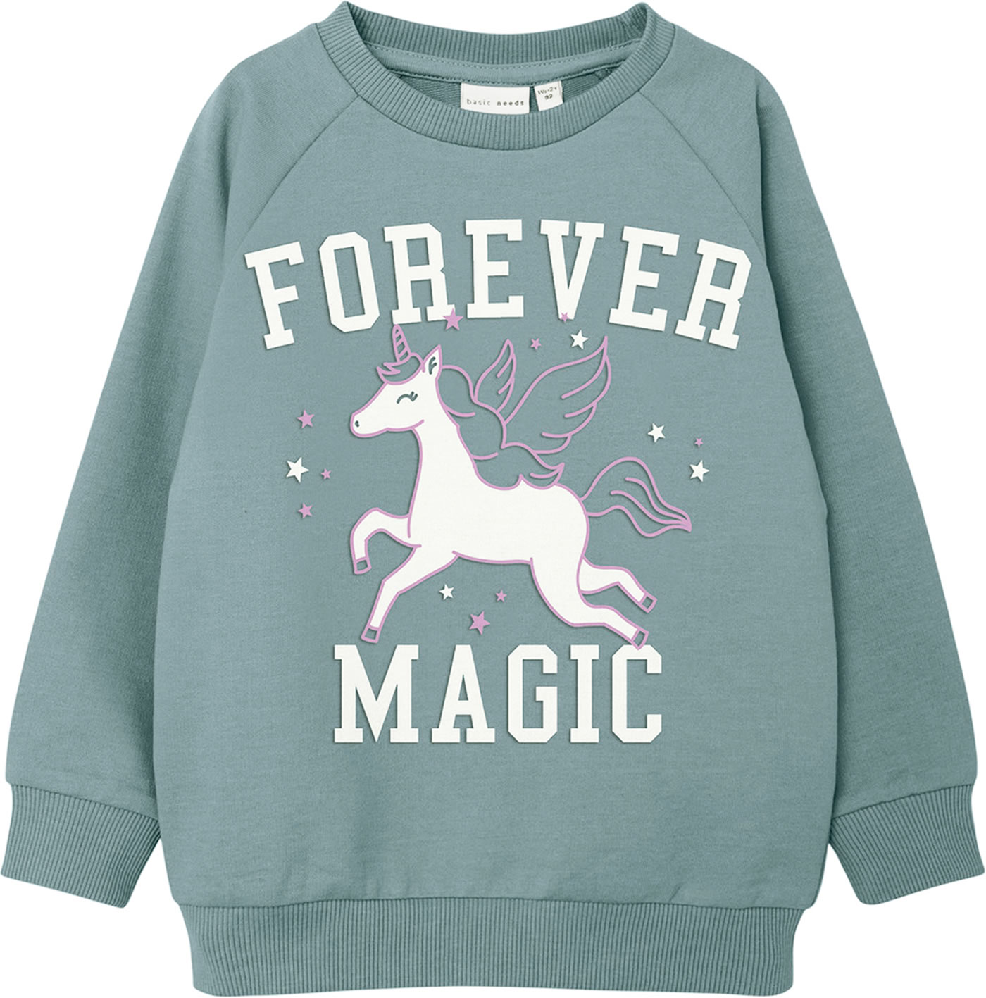 Tolles Sweatshirt für Mädchen von NAME IT. Ein Hingucker ist das hübsche Einhornmotiv und der Schriftzug auf der Vorderseite.