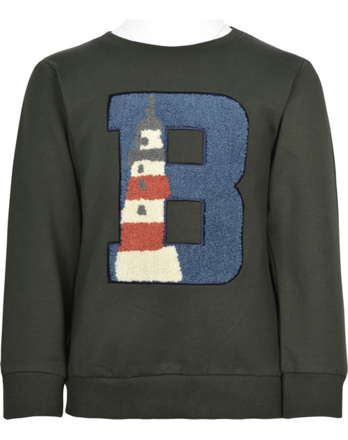 Sweatshirt für Jungen von NAME IT. Das Sweatshirt hat einen coolen Baumwoll Patch mit Leuchtturm auf der Vorderseite. Innen ist es weich angeraut und dadurch kuschelig warm. Bündchen an Ärmeln und Saum sorgen für guten Sitz.