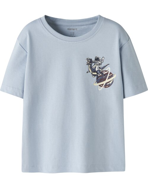 Name it T-Shirt aus 100% Baumwolle mit Astronaut und Dino - Blue Fog