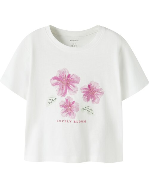 Name it T-Shirt aus 100 % Baumwolle mit Hibiskusblüten NMFHIMAYA - Bright White