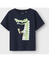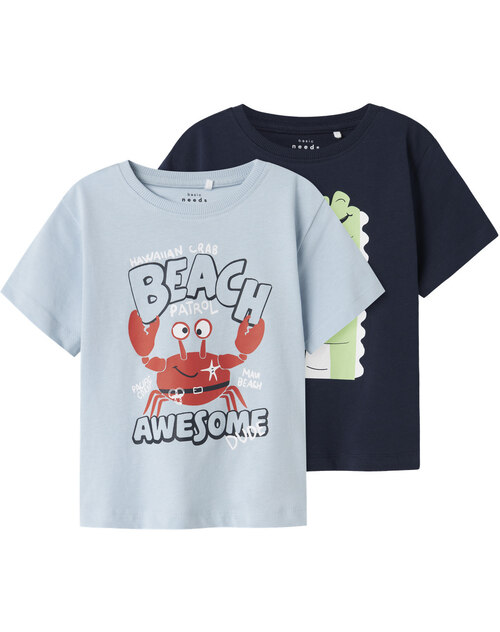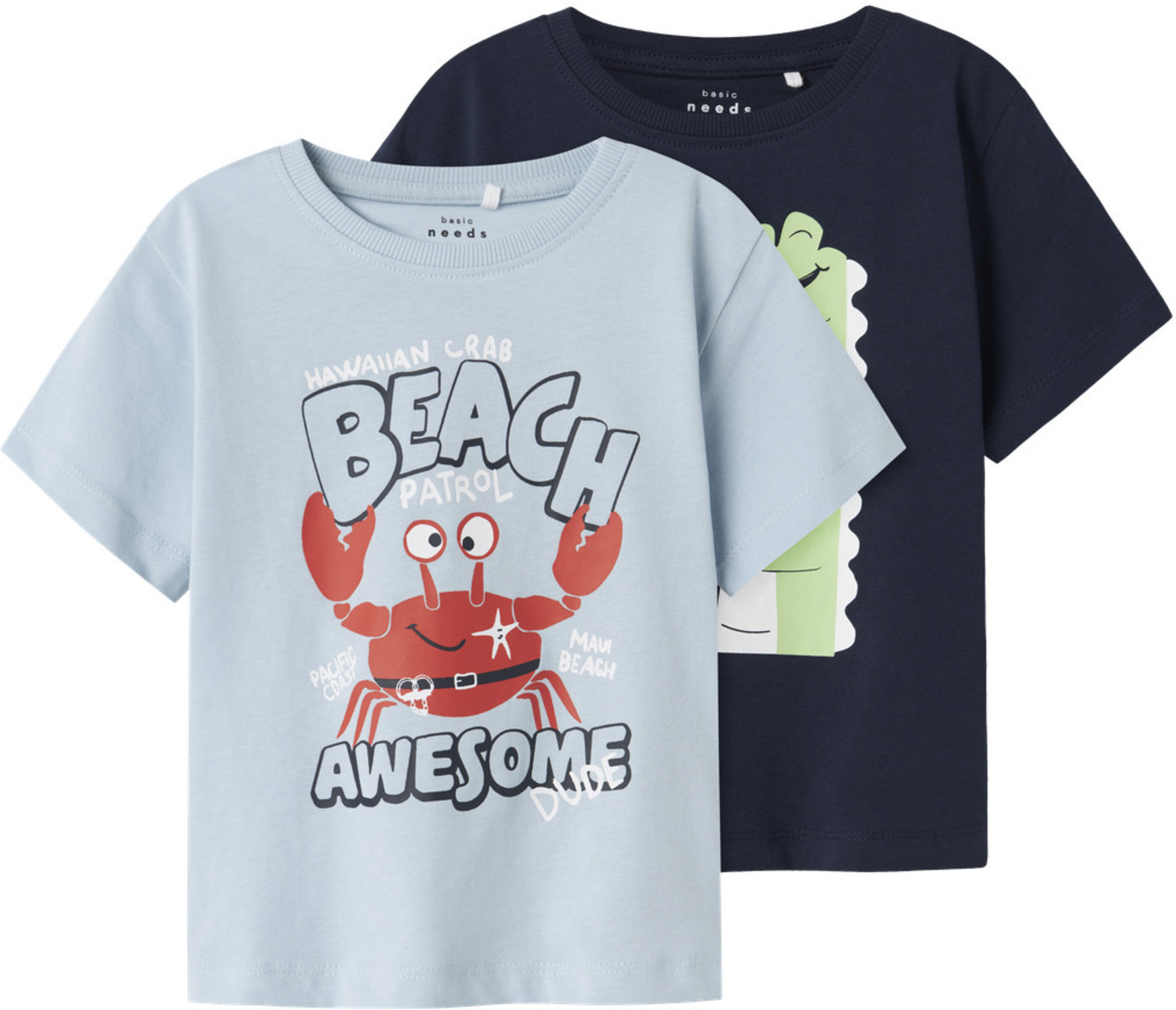 Tolle Kurzarmshirts im 2er Pack für Jungen von Name it. Das hellblaue Shirt hat einen tollen Druck mit Hummer und das dunkelblaue Shirt hat ein lustiges Krokodil-Motiv auf der Vorderseite.
