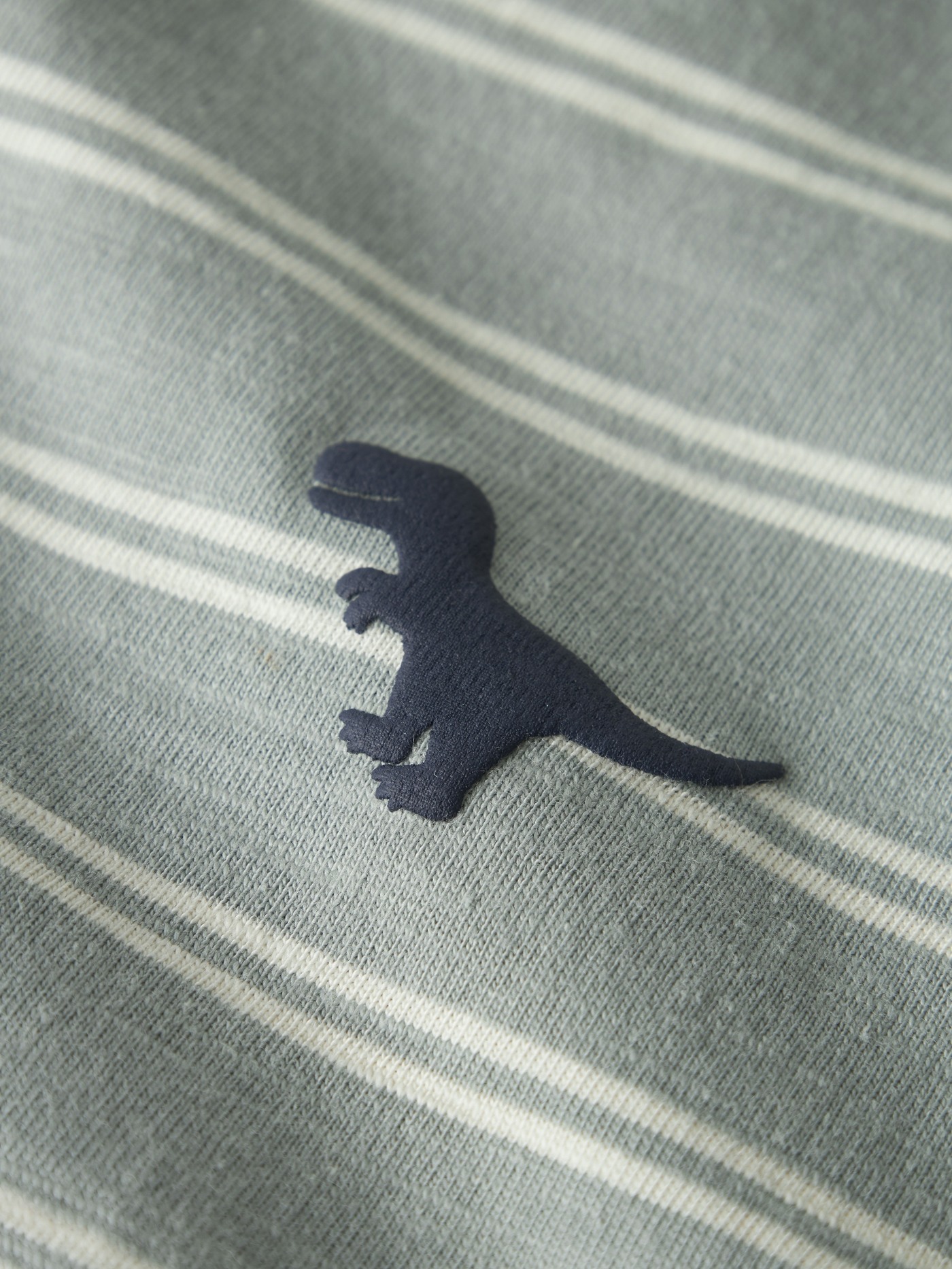 Das Shirt im klassische Streifenmuster mit dem kleinen Dino auf der Brust wird schnell zum Lieblingsstück.
