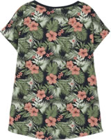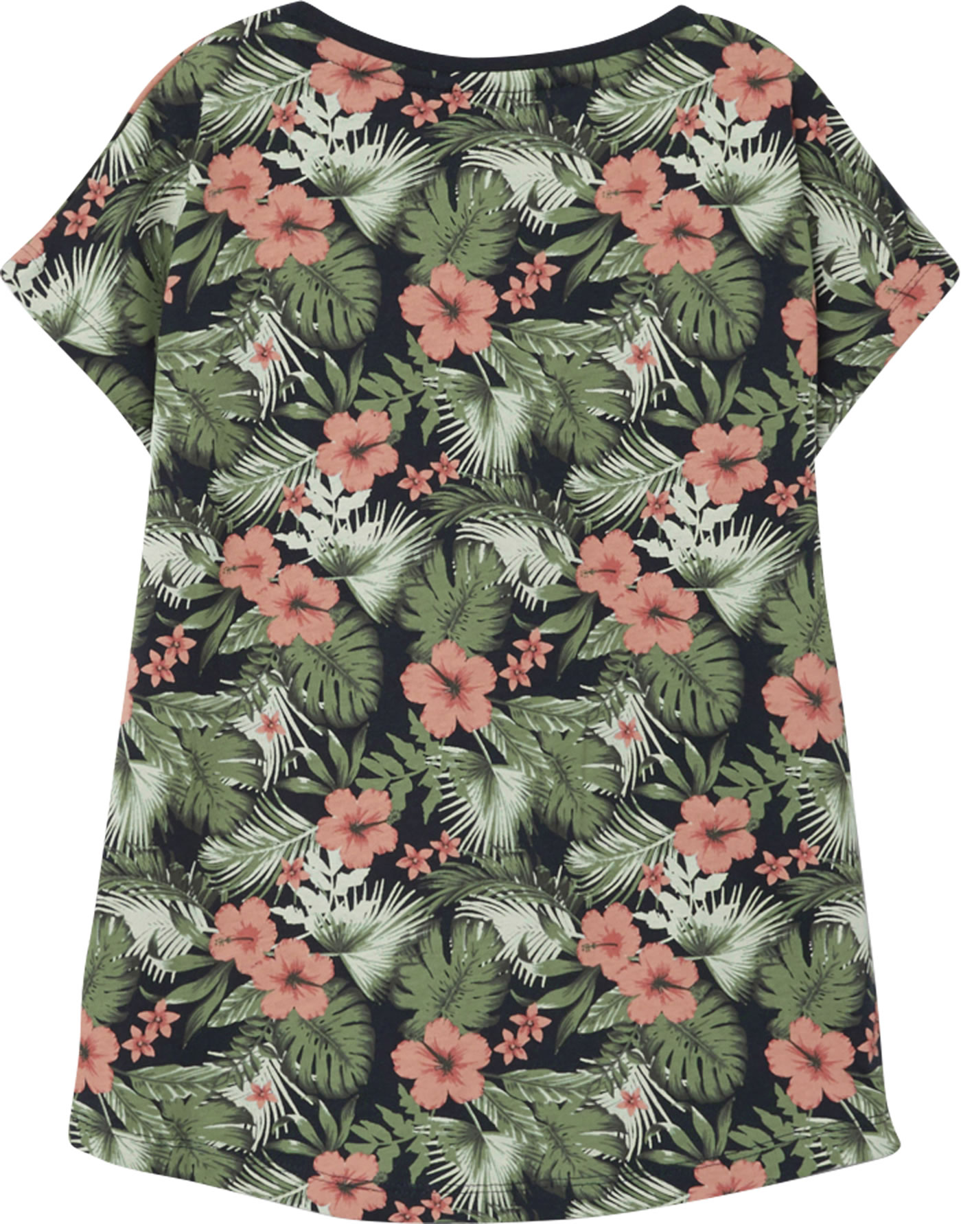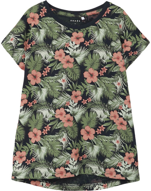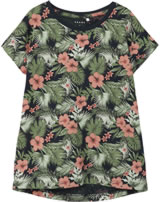 Schönes Kurzarmshirt für Mädchen von NAME IT. Das Shirt hat einen Alloverdruck von Blumen und Palmen. Im Rücken ist das Shirt etwas länger geschnitten. Das weiche Material sorgt für einen hohen Tragekomfort.