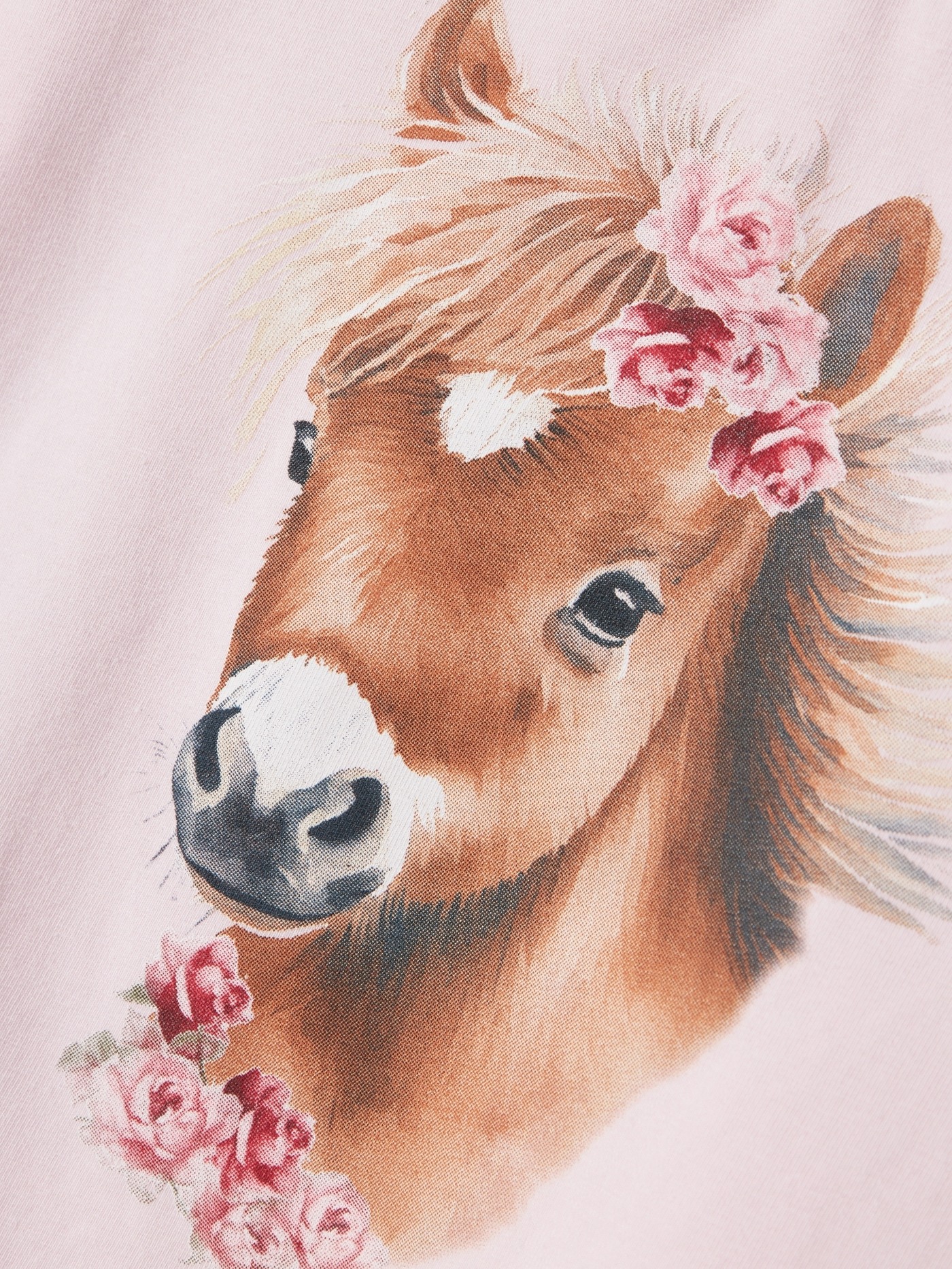 Tolles Kurzarmshirt für kleine Pferdefans von Name it. Das weiche Material sorgt für einen hohen Tragekomfort.