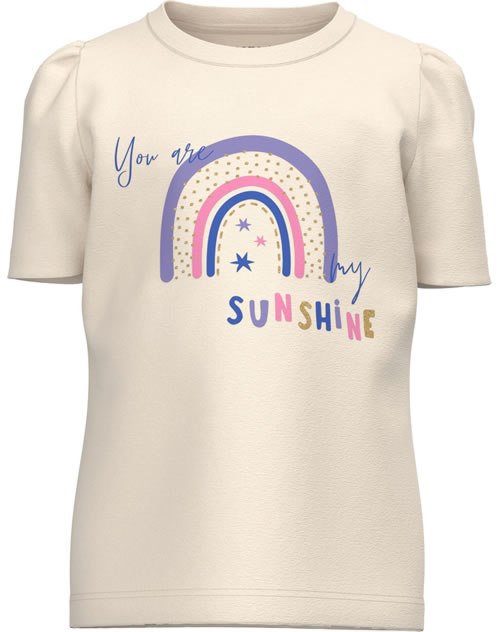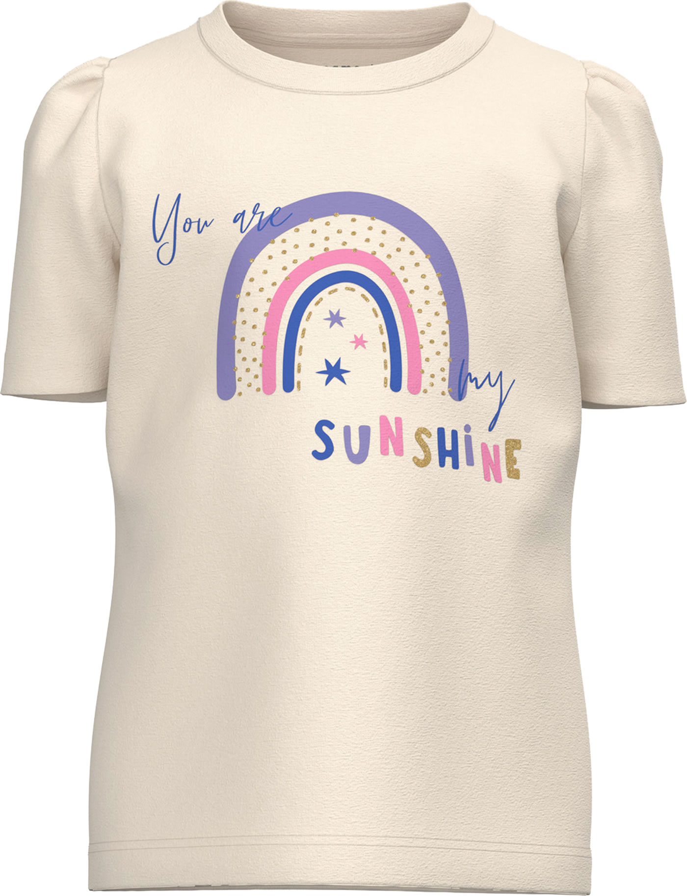 Tolles Kurzarmshirt für Mädchen von NAME IT. Das Shirt hat einen tollen Druck mit glitzernden Details auf der Vorderseite und die Ärmel sind leicht gerafft. Das weiche Material sorgt für einen hohen Tragekomfort.