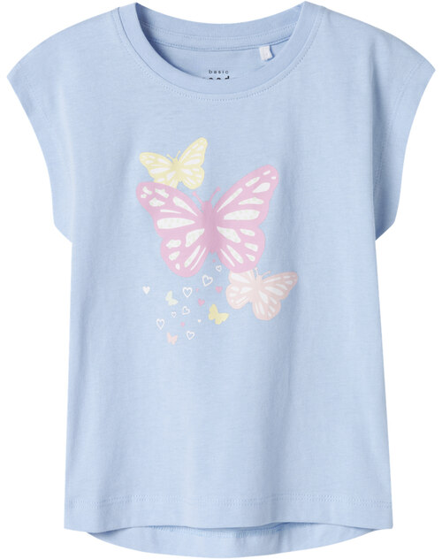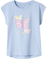 name it T-Shirt Kurzarm NMFVIGEA aus Baumwolle - Chambray Blue/Butterflies
