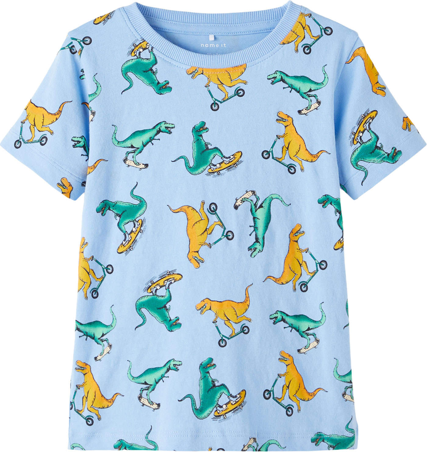 Kurzarmshirt für Jungen von NAME IT. Das T-Shirt hat einen tollen Print mit vielen bunten Dinos. Das weiche Material sorgt für einen hohen Tragekomfort.