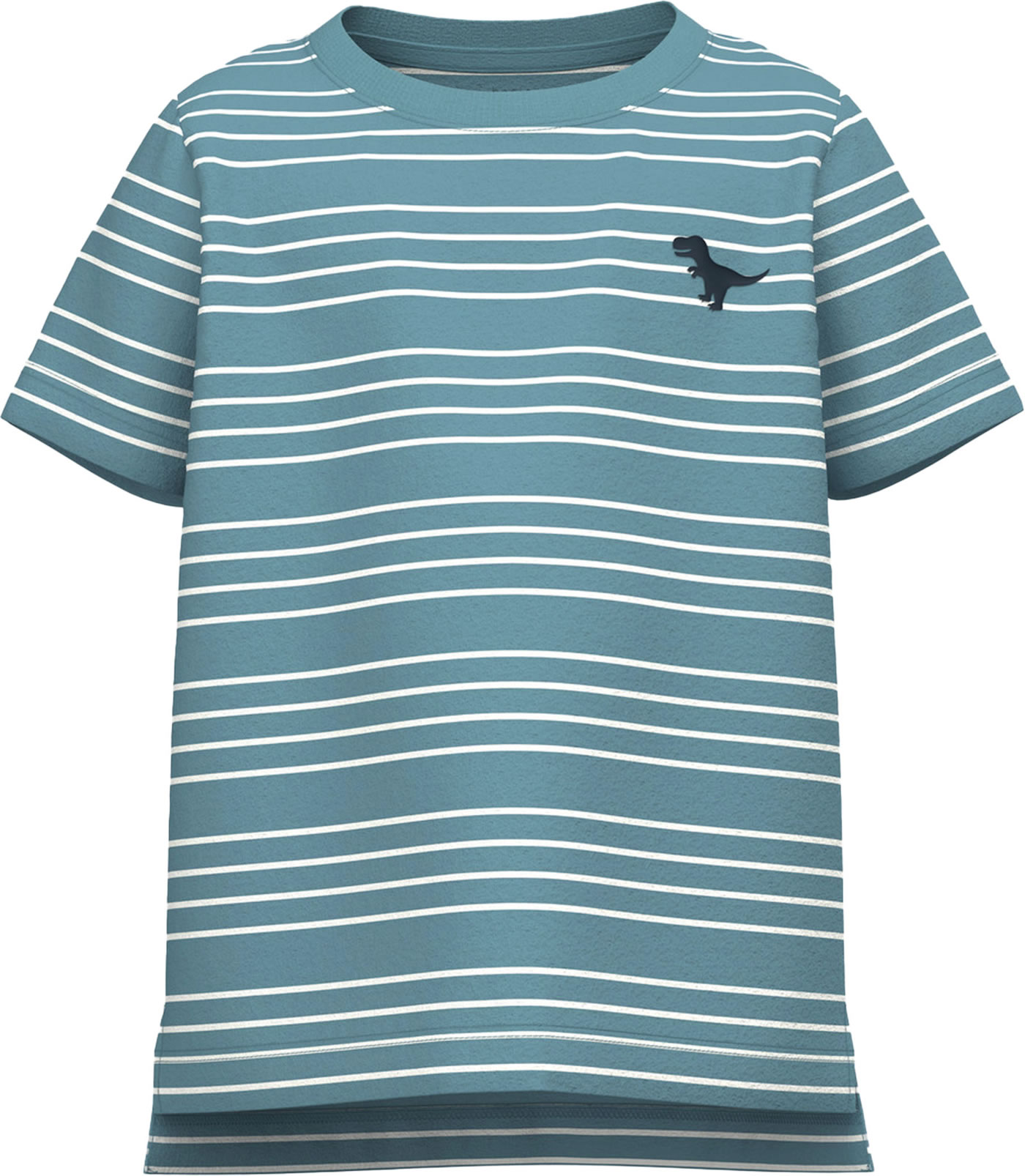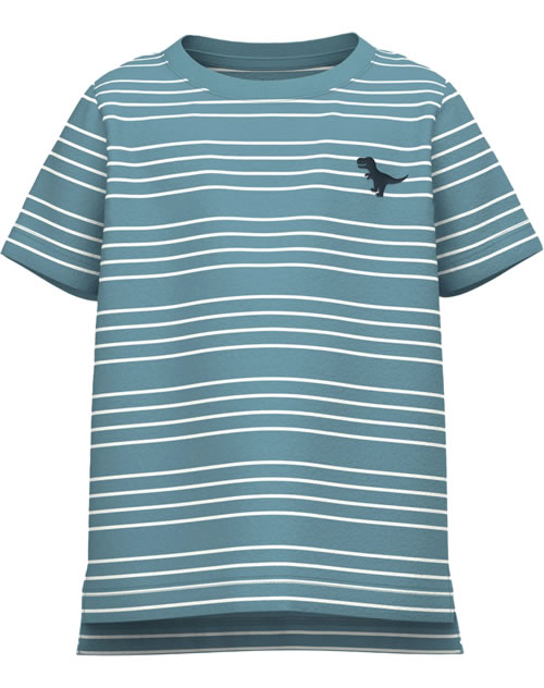 Tolles Kurzarmshirt für Jungen von NAME IT. Das Shirt ist gestreift und hat auf der Vorderseite einen kleinen Dinoaufdruck. Das weiche Material sorgt für einen hohen Tragekomfort. Die Rückseite ist etwas länger geschnitten.