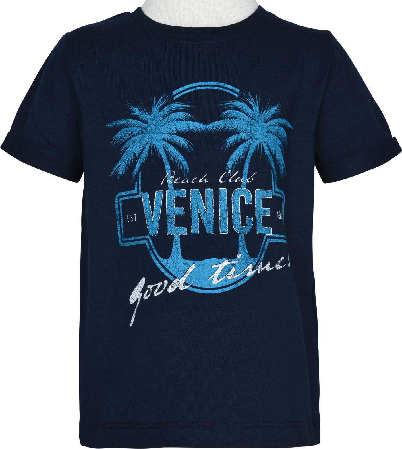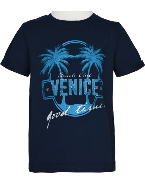 Dunkelblaues Kurzarmshirt für Jungen von NAME IT. Das T-Shirt hat einen tollen Beach Club Print mit auf der Vorderseite. Es hat einen lockeren Schnitt und läßt sich prima kombinieren.