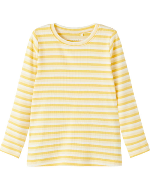 Gestreiftes Langarmshirt für Mädchen von NAME IT. Das Shirt ist schmal geschnitten und aus geripptem Baumwoll-Material. Das farbenfrhoe Shirt lässt sich prima kombinieren.