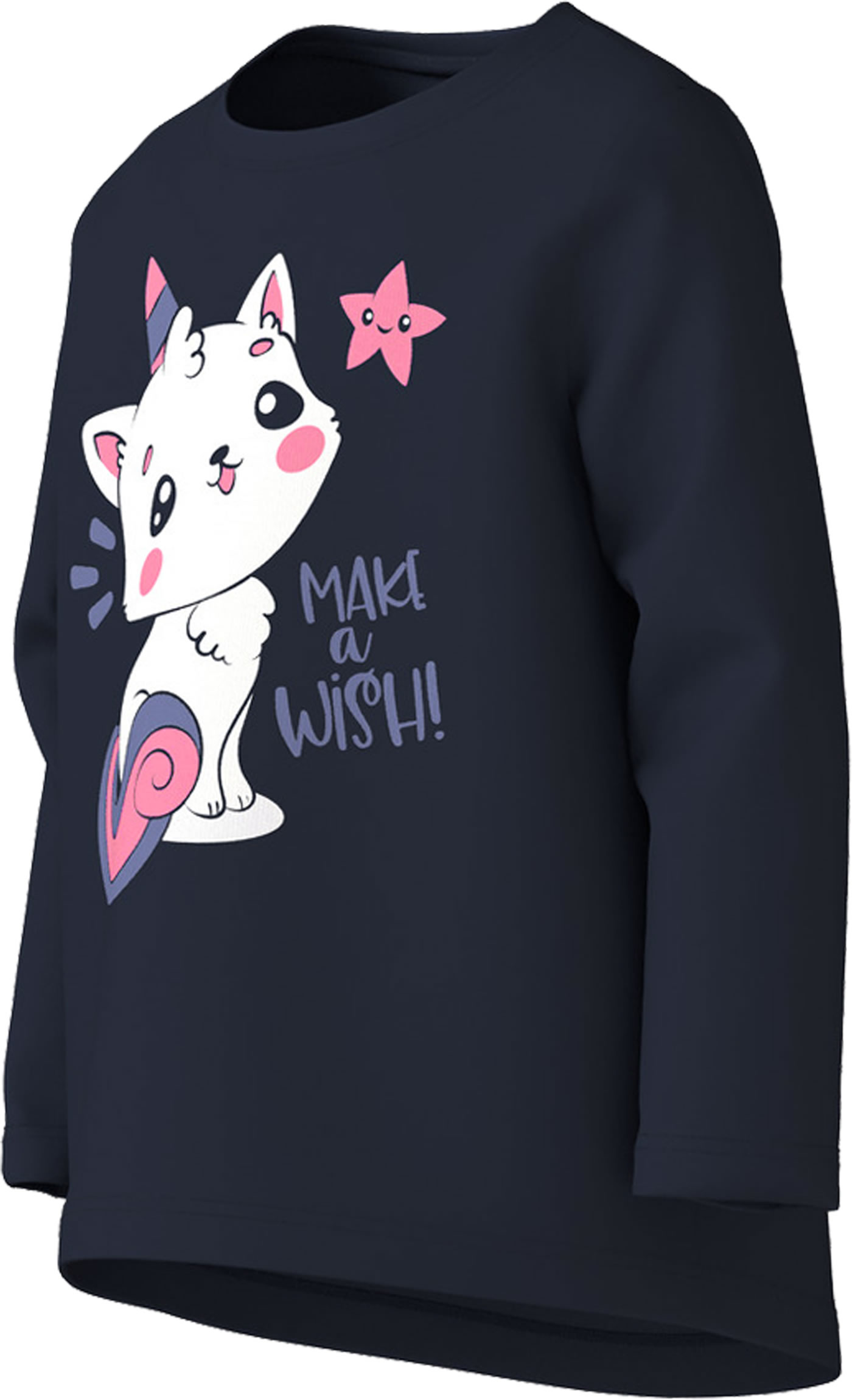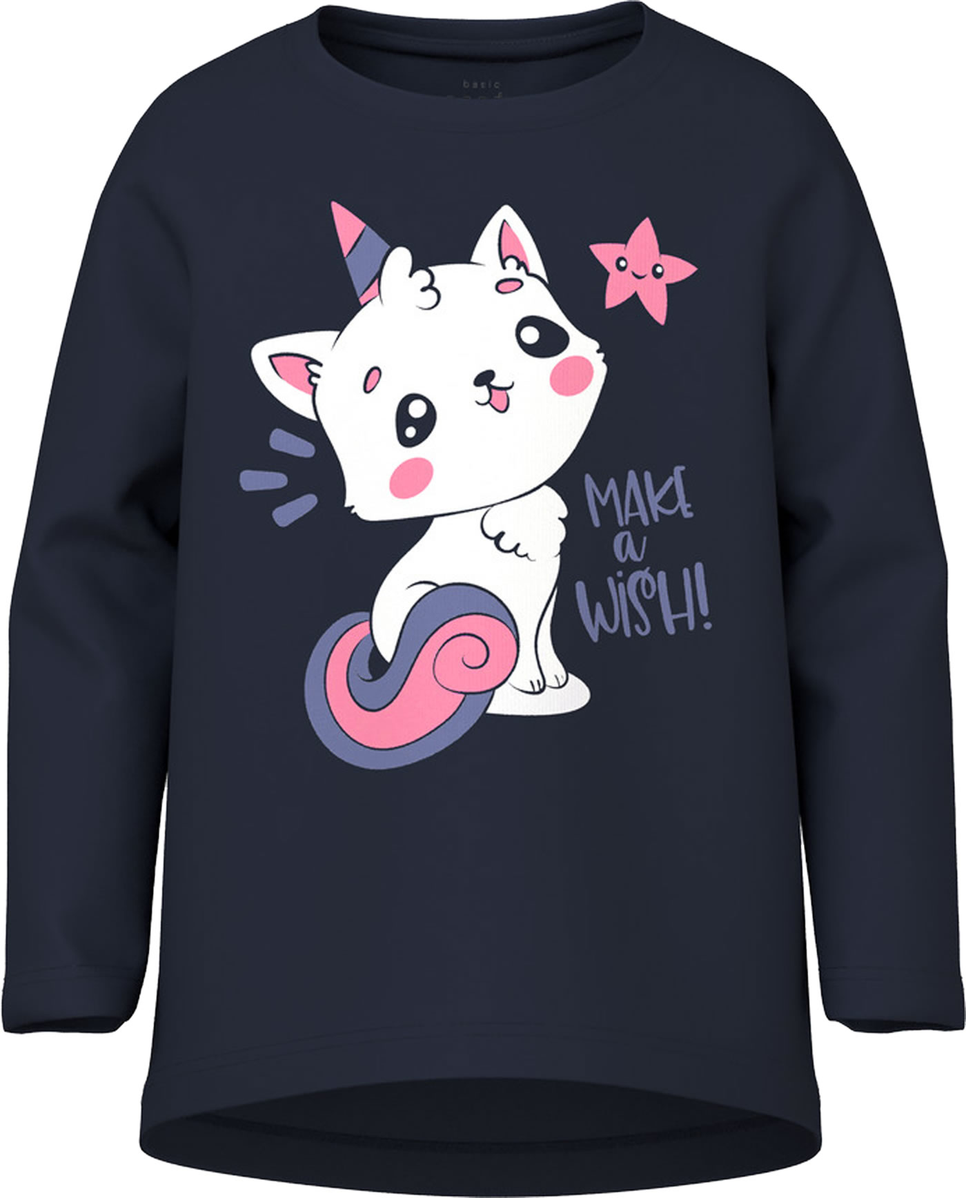 Langarmshirt für Mädchen von NAME IT. Das Shirt hat einen tollen Druck auf der Vorderseite. Das weiche Material sorgt für einen hohen Tragekomfort. Die Rückseite ist etwas länger geschnitten.
