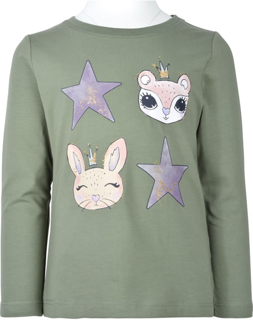 Langarmshirt für Mädchen von NAME IT. Das T-Shirt hat einen tollen Print mit Glitzer auf der Vorderseite. Das weiche Material sorgt für einen hohen Tragekomfort. Die Rückseite ist etwas länger geschnitten.