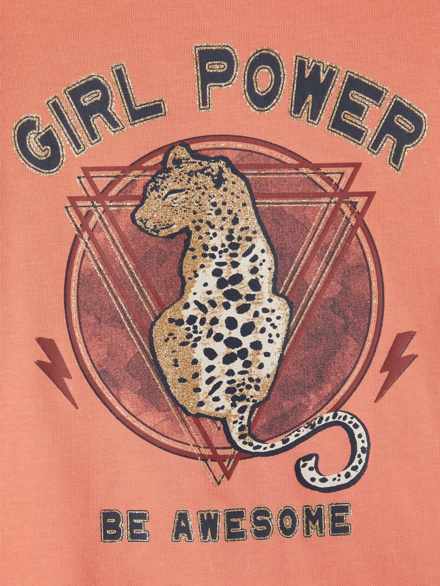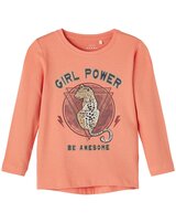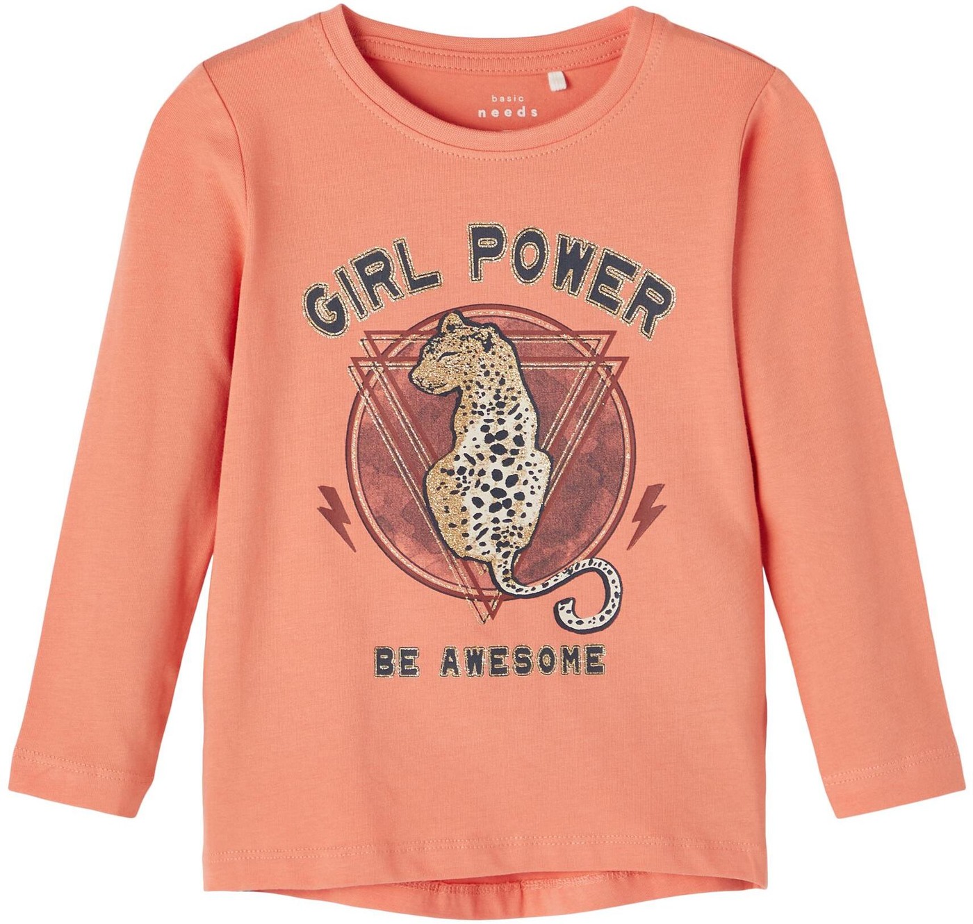 Langarmshirt für Mädchen von NAME IT. Das T-Shirt hat einen tollen Print mit Glitzer auf der Vorderseite. Das weiche Material sorgt für einen hohen Tragekomfort. Die Rückseite ist etwas länger geschnitten.
