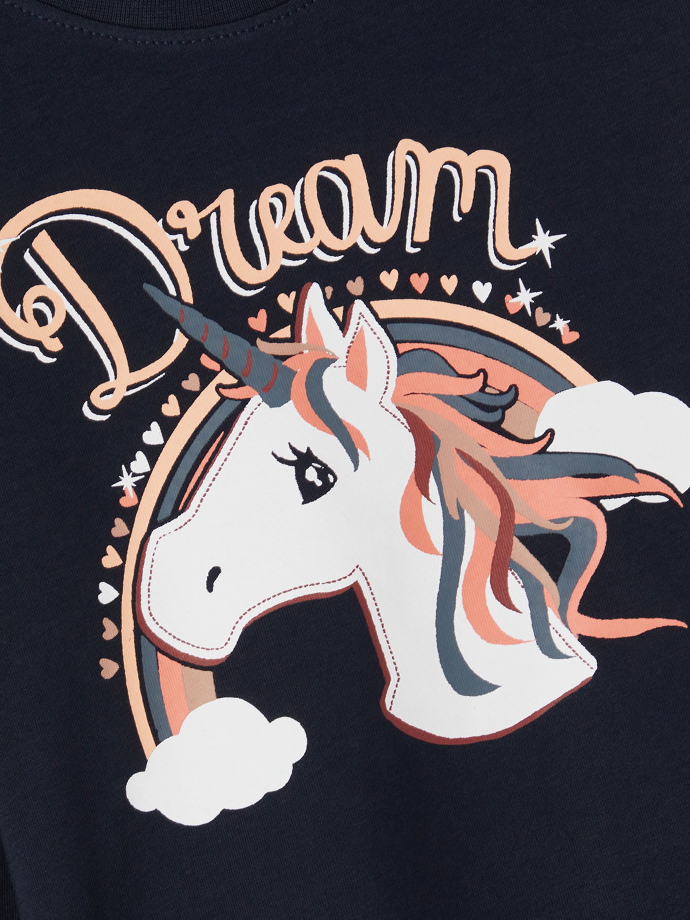 Langarmshirt für Mädchen von NAME IT. Das T-Shirt hat einen tollen Print mit einem Einhorn auf der Vorderseite. Das weiche Material sorgt für einen hohen Tragekomfort. Die Rückseite ist etwas länger geschnitten.