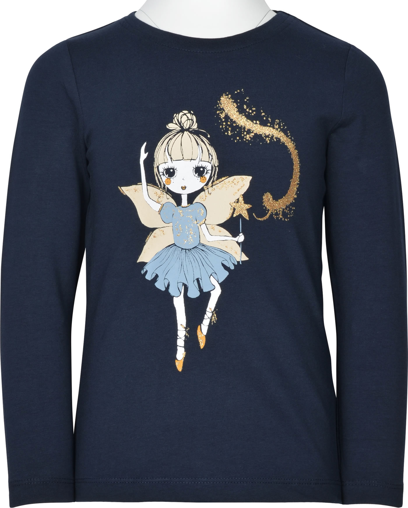 Langarmshirt für Mädchen von NAME IT. Das T-Shirt hat einen tollen Print mit Glitzer auf der Vorderseite. Das weiche Material sorgt für einen hohen Tragekomfort. Die Rückseite ist etwas länger geschnitten.