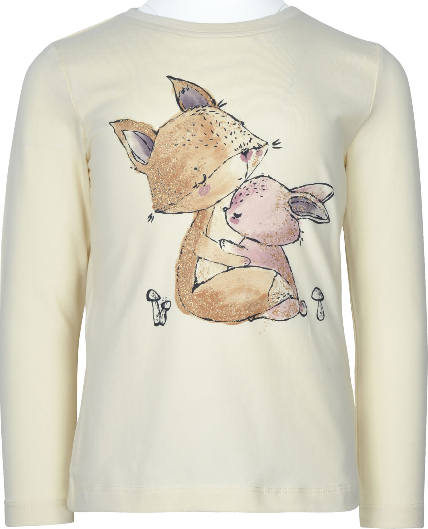 Langarmshirt für Mädchen von NAME IT. Das T-Shirt hat einen tollen Print mit Glitzer auf der Vorderseite. Das weiche Material sorgt für einen hohen Tragekomfort. Die Rückseite ist etwas länger geschnitten.