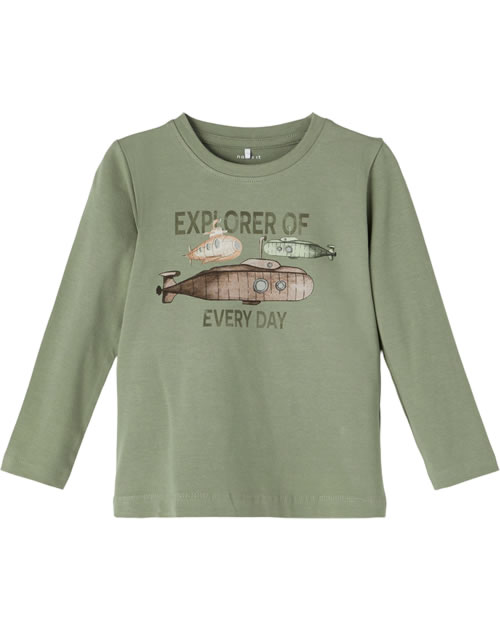 Langarmshirt für Jungen von NAME IT. Das T-Shirt hat einen tollen Print mit U-Booten auf der Vorderseite. Das weiche Material sorgt für einen hohen Tragekomfort.