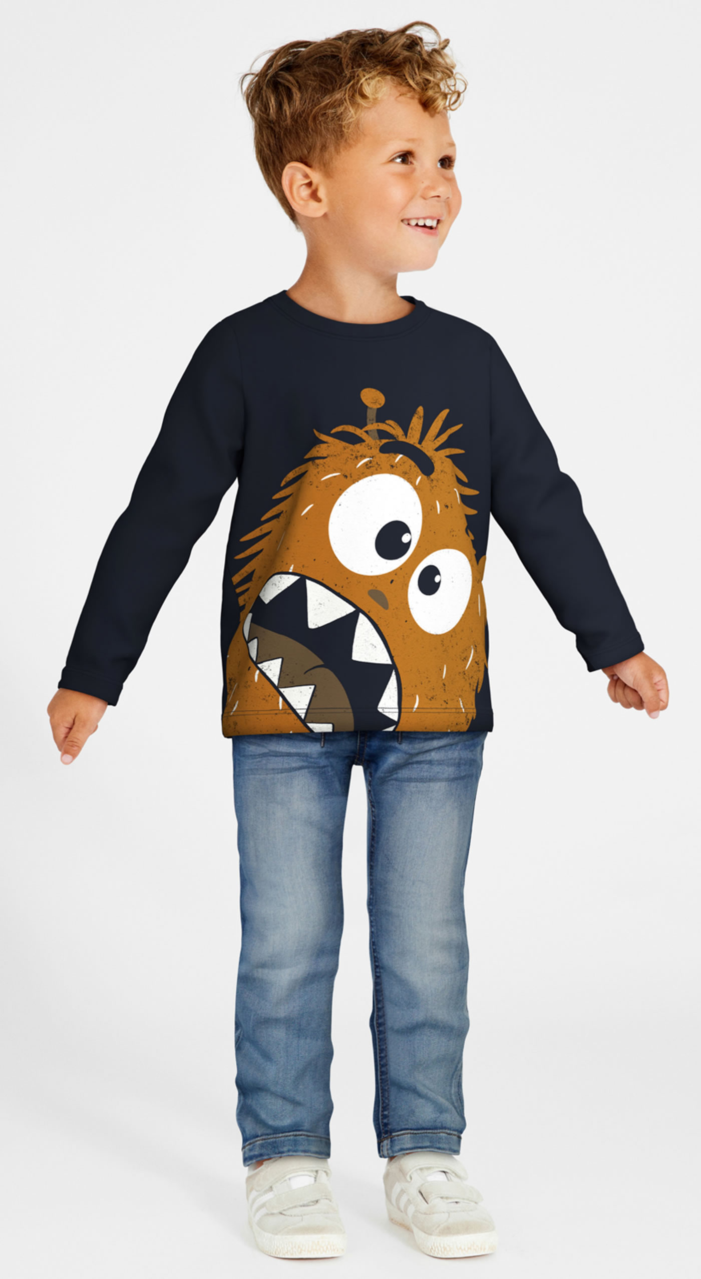 Langarmshirt für Jungen von NAME IT. Das Shirt hat eine tolles Monstermotiv auf der Vorderseite. Das weiche Material sorgt für einen hohen Tragekomfort. Es läßt sich prima zu Jeans kombinieren.