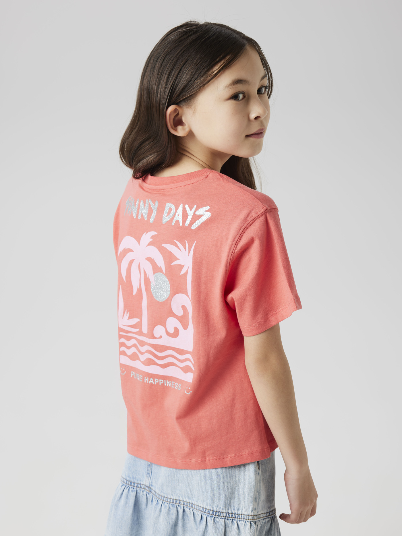 Name it T-Shirt NKFJELY aus Baumwolle mit Glitzerprint- Spiced Coral