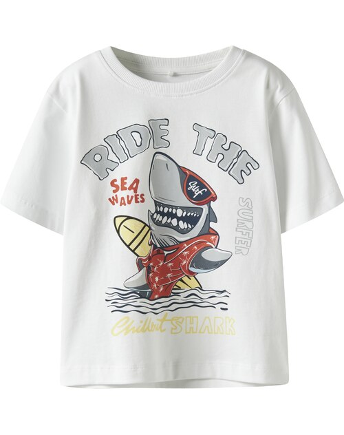 Dieses tolle Kurzarmshirt von Name it hat einen coolen Hai-Print auf der Vorderseite🦈